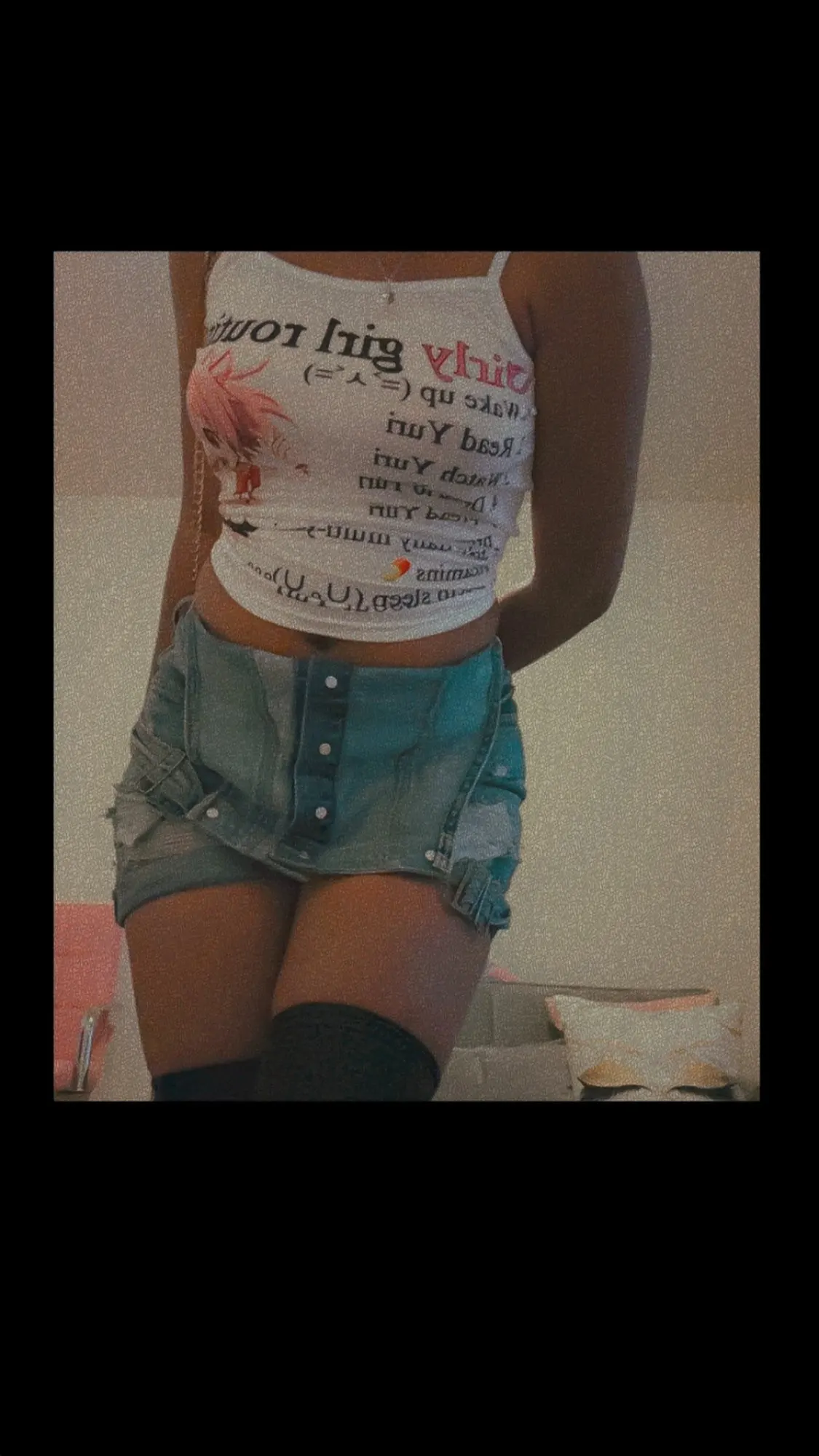 Super cute it looked boxy when i first unpacked it but it fits so well and its rlly comfy the material is to die for [the photo has nothing to do with the shirt i just want to show u my billy lenz shrine]