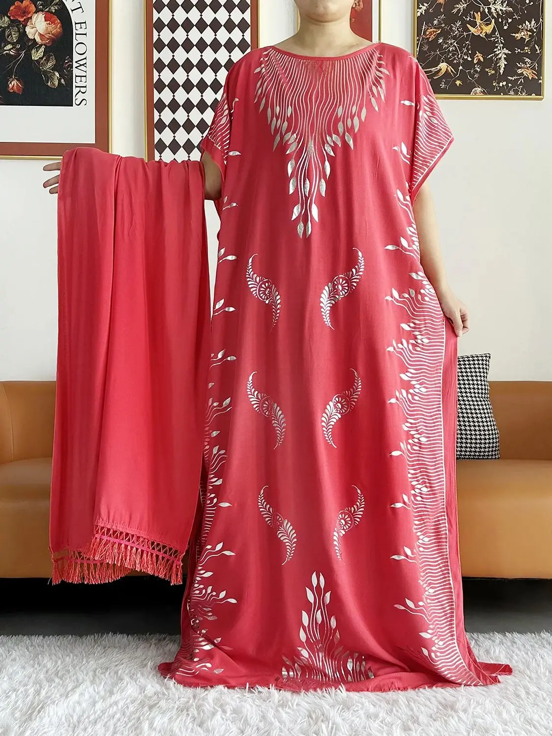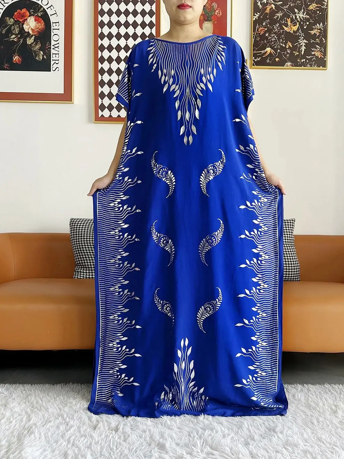 Home / 2023 Summer Short sleeve Dress Pure Cotton Gold Stamping Loose Abaya Maxi Islam Dress with Tassels Big Scarf African Long Dress – AliExpress