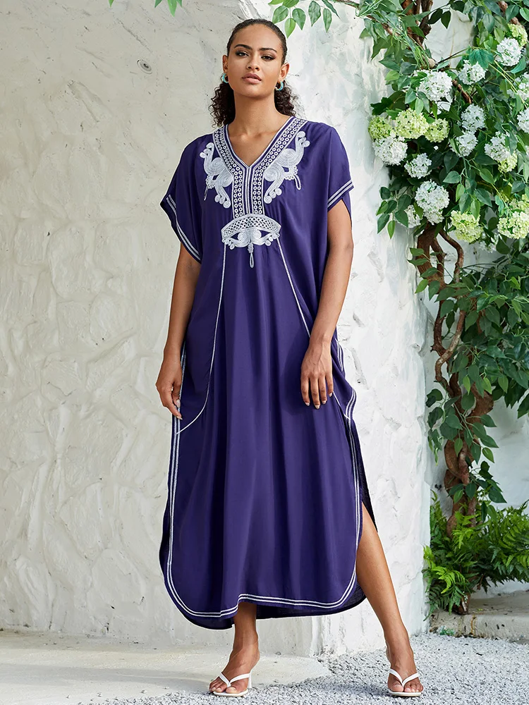 4 reviews for 2024 Vintage Embroidery Kaftan Sexy V-neck Batwing Sleeve High Waist Maxi Dress Tunic Women Clothing Summer Beach Dresses Q660 – AliExpress 200000345