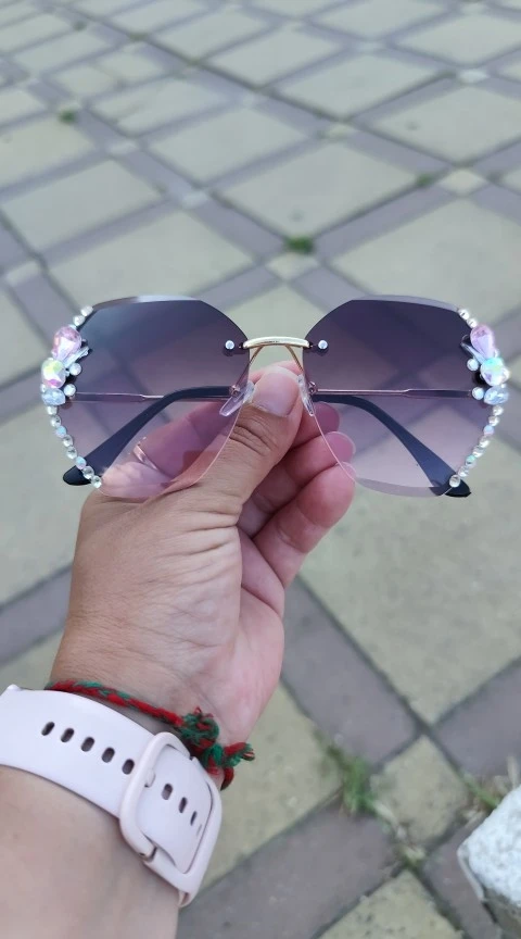 This got eyes turning… I am so glad i got this unique 2025 luxury brand design vintage rimless rhinestone sunglasses