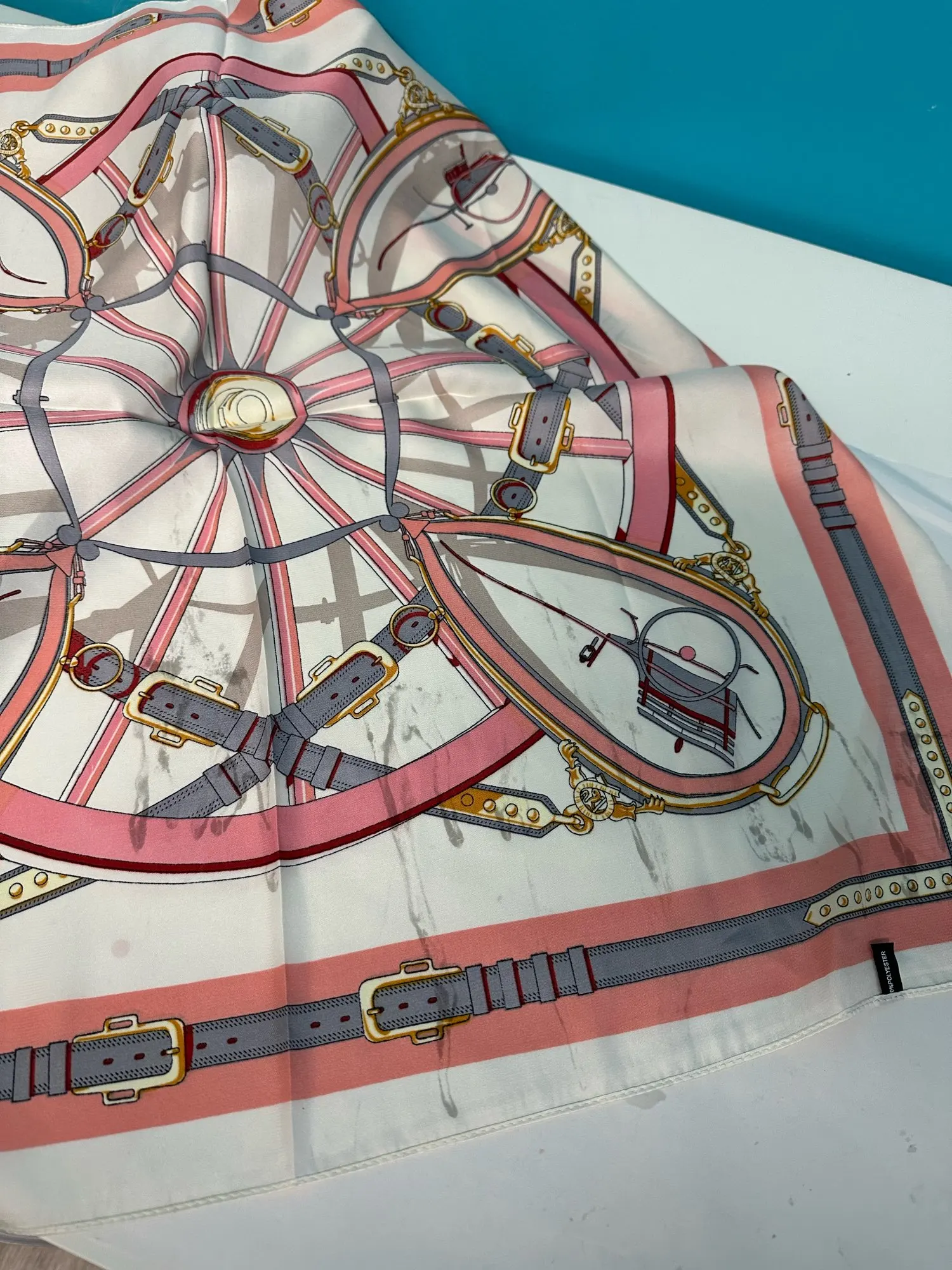 Look at the stain all over the scarf. I want my money back. It’s like this on 4 scarves. I feel like I wasted my money and time!!!!!!!!