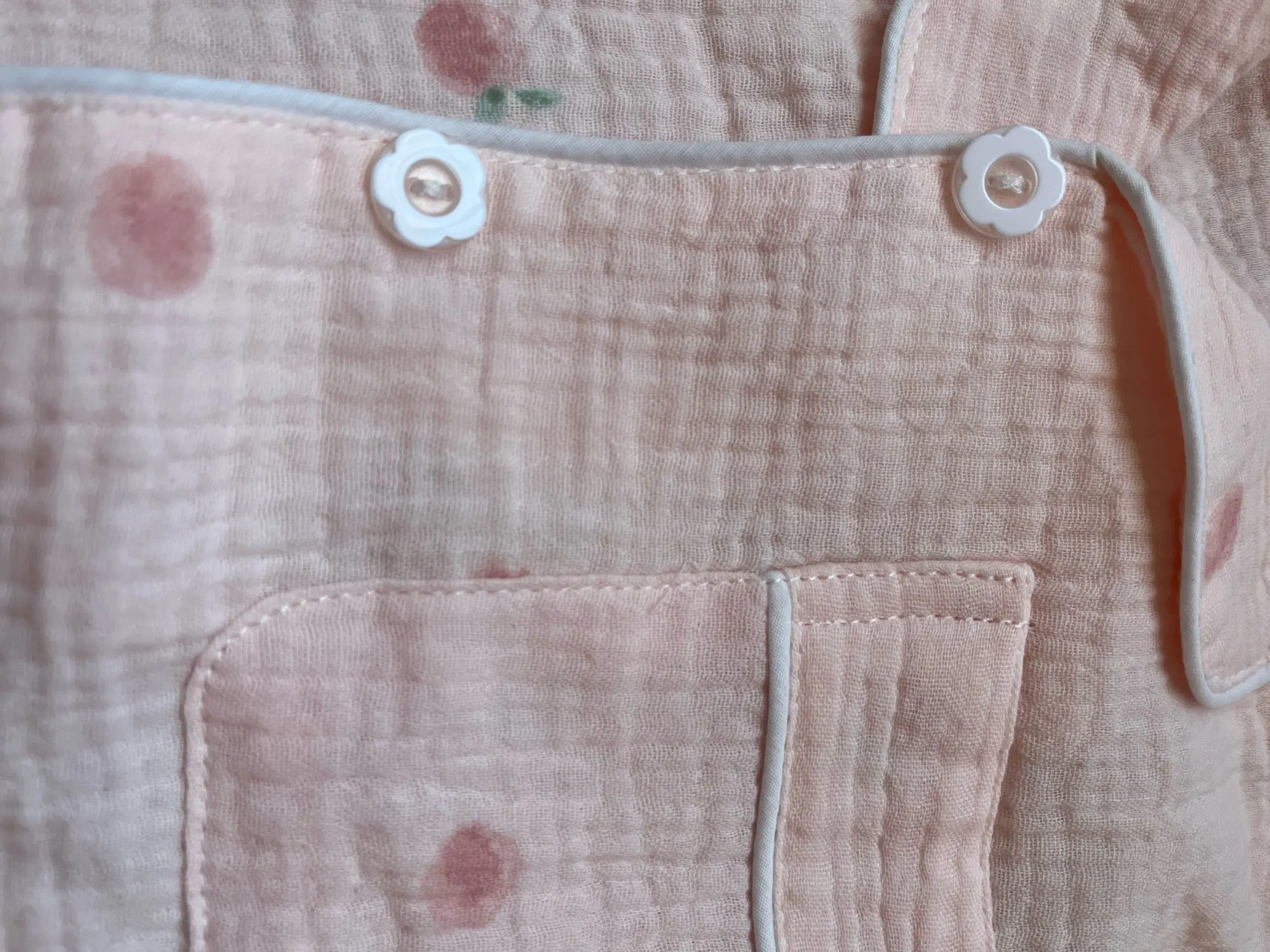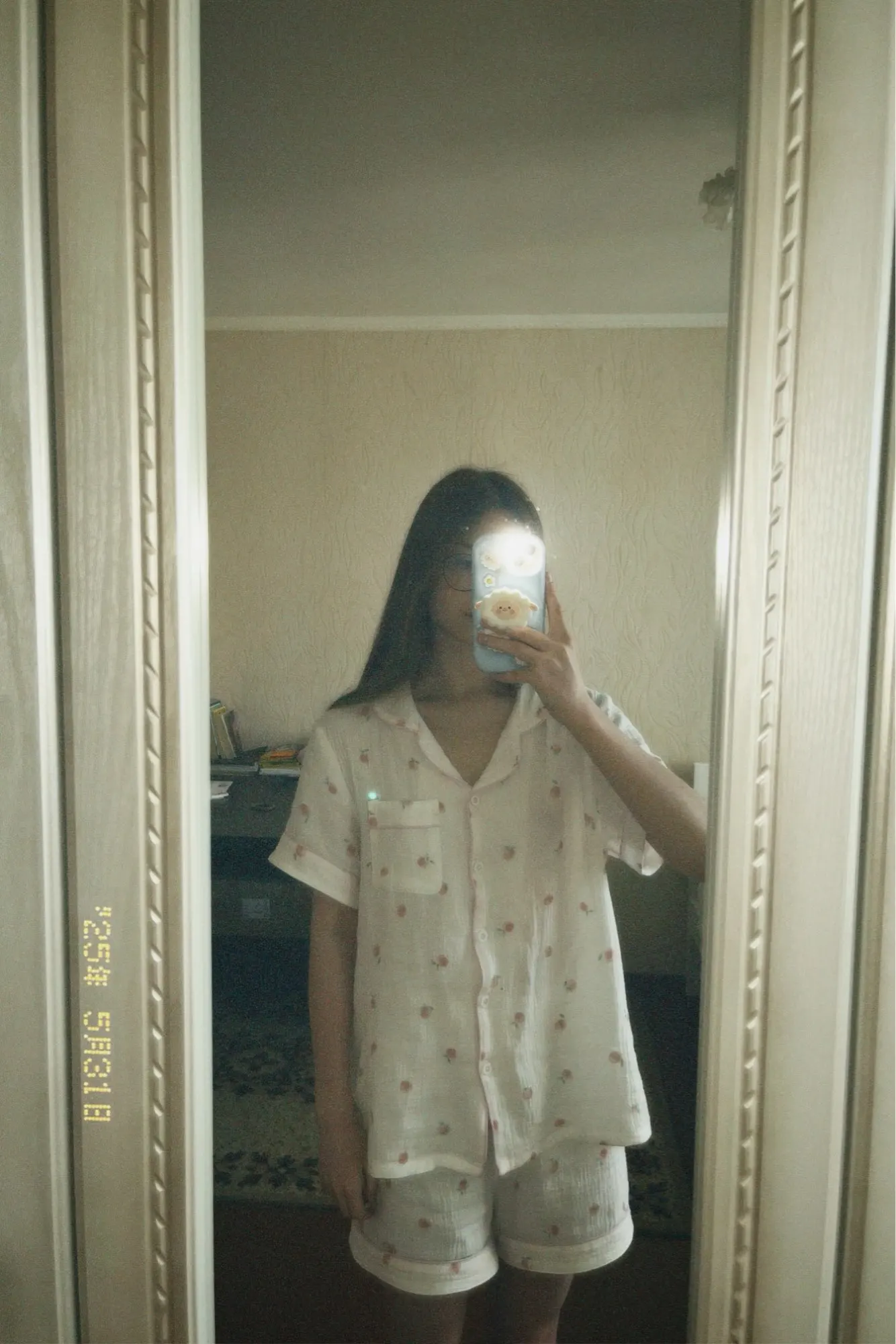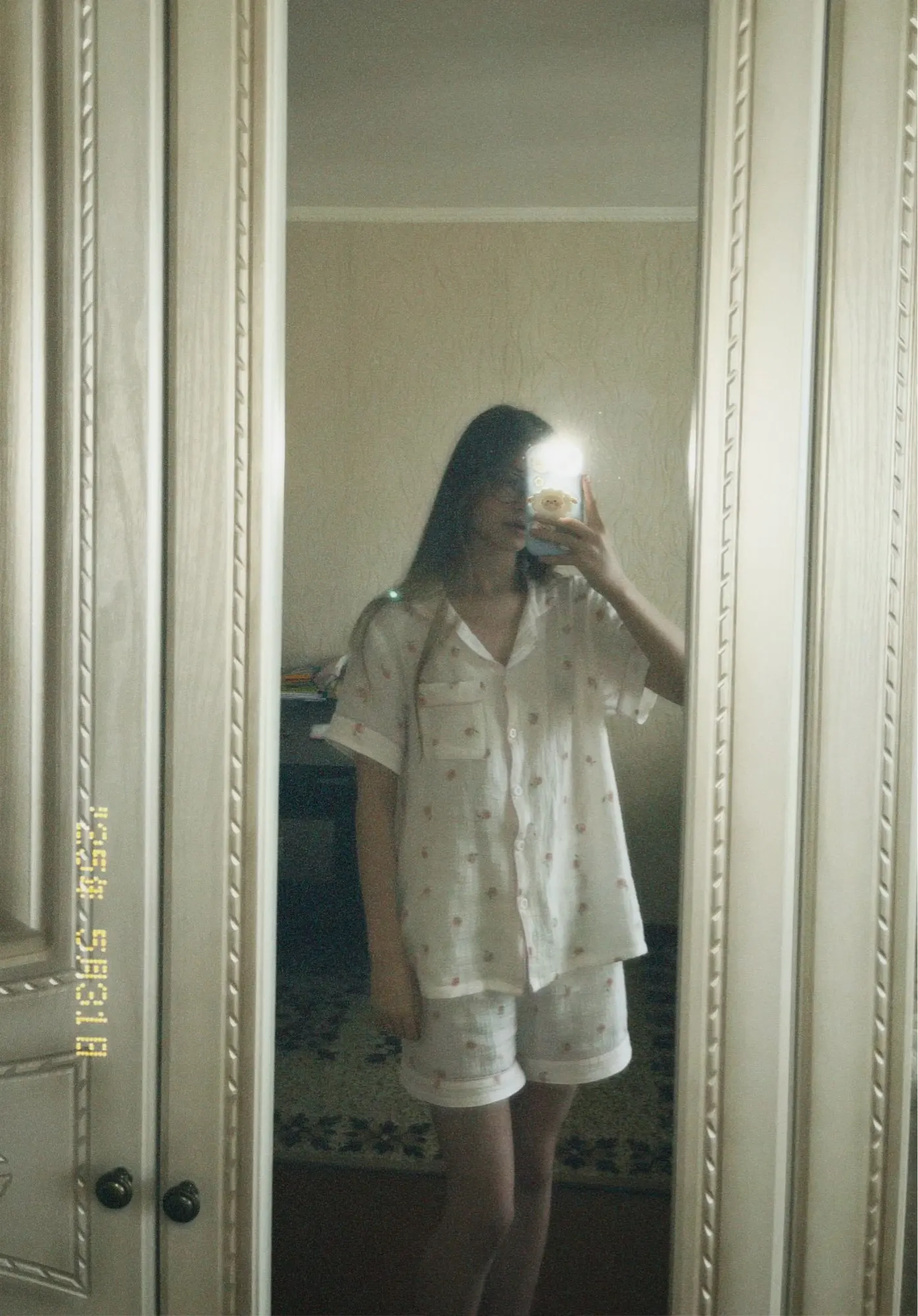 pleasant genuine muslin. the quality of the seams is good. The elastic on the shorts is quite tight, but the blouse is loose. in general, the size fits the parameters 95×75×95