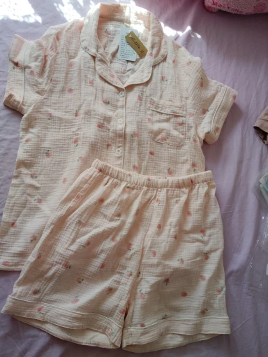 Very comfortable cotton pyjamas. Good quality, soft and pretty material. Perfect for summer evenings, lounging and sleeping. Fast shipping and delivery.