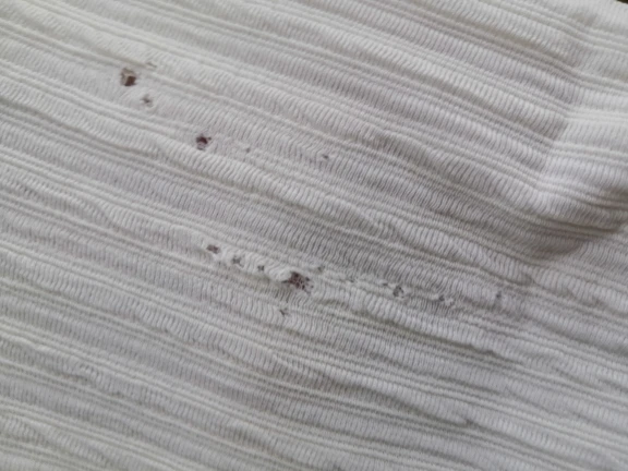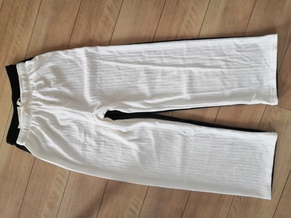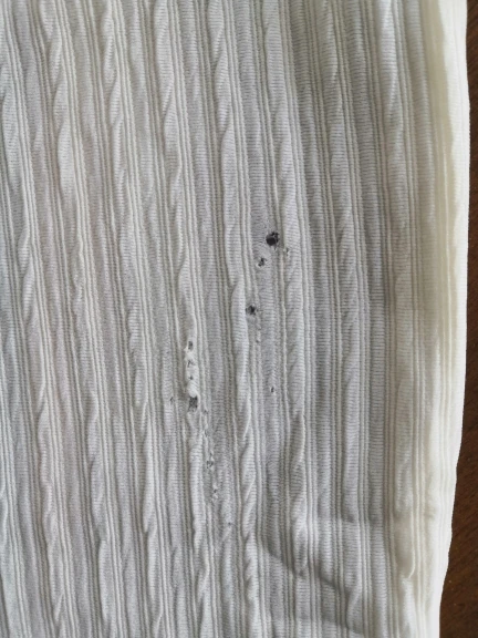 I just received the package and when i opened it i saw that the pants were pulled apart, and there was a small hole and stain. The photo can’t show it. I hope the merchant can send me another pair.