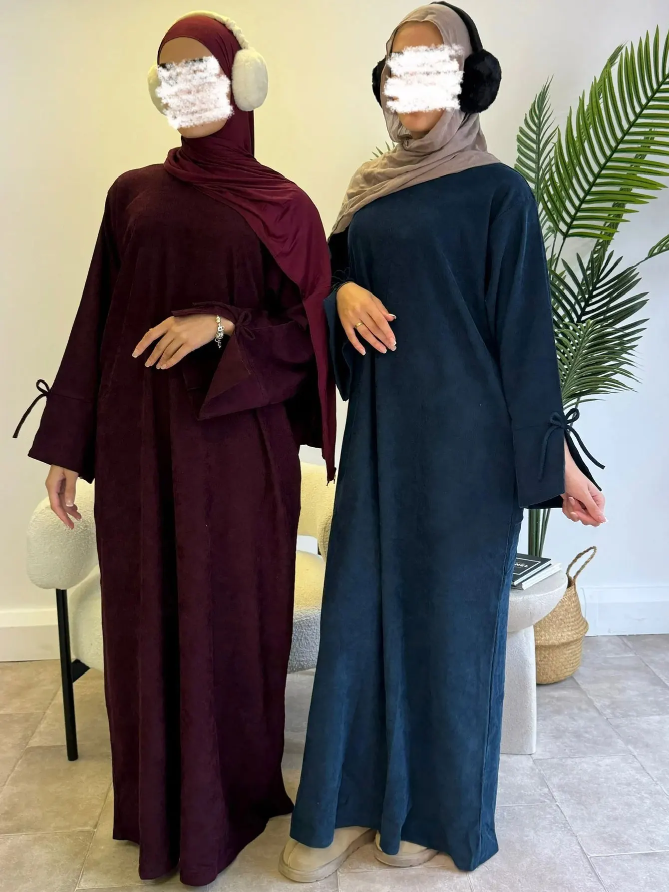 3 reviews for Women’s corduroy abaya , Muslim dress, sleeves with bow tie, modest prayer clothes, winter