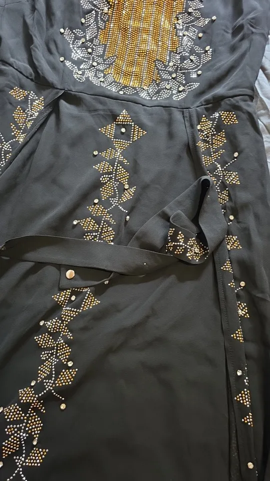 The fabric is chiffon and light for summer, which is great, but for hijab wearers, a sleeveless undershirt is necessary under the abaya. Nevertheless, it’s a beautiful and wonderful piece for its price.
