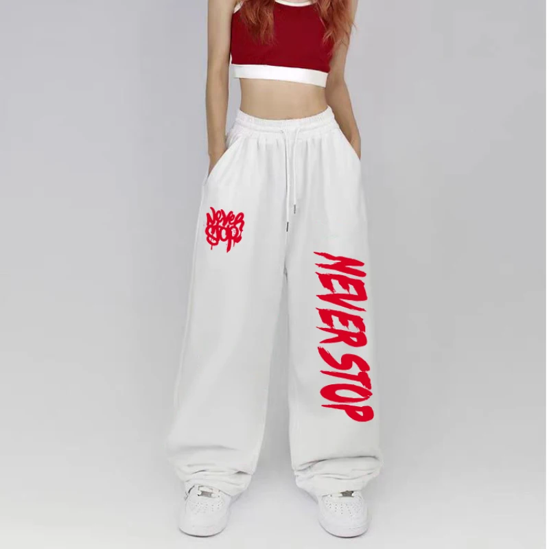 Black White Drawstring Design Sweatpants Women Street Dance Hip-hop Sports Pants for Women New Summer All-match Long Pants Woman - AliExpress