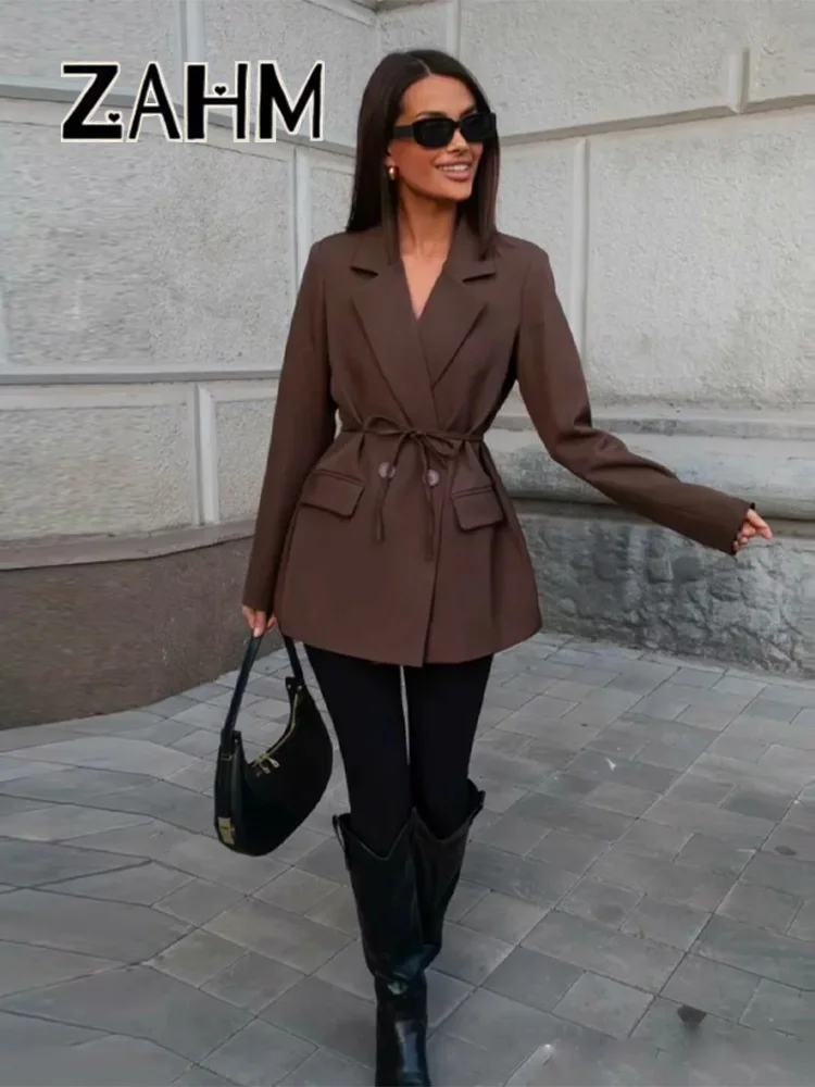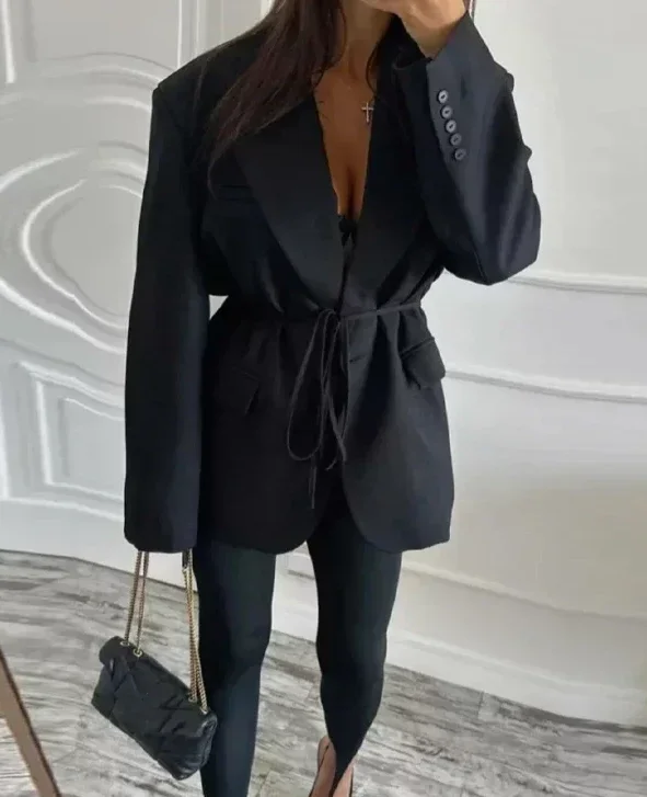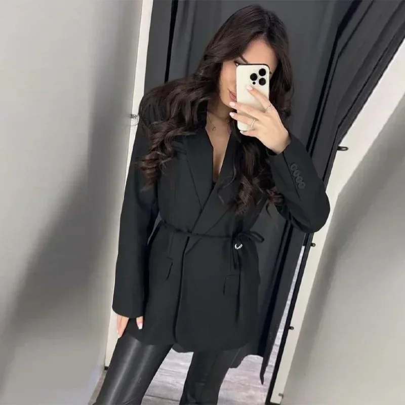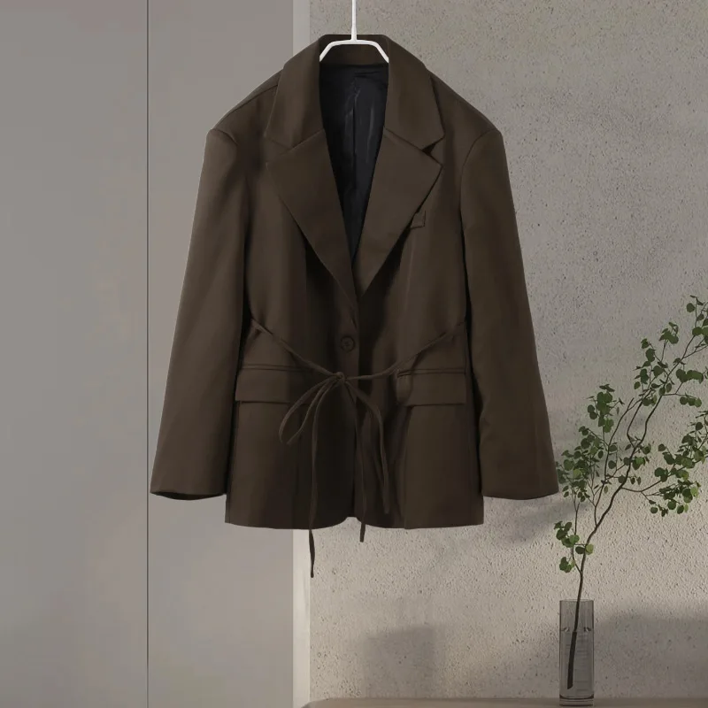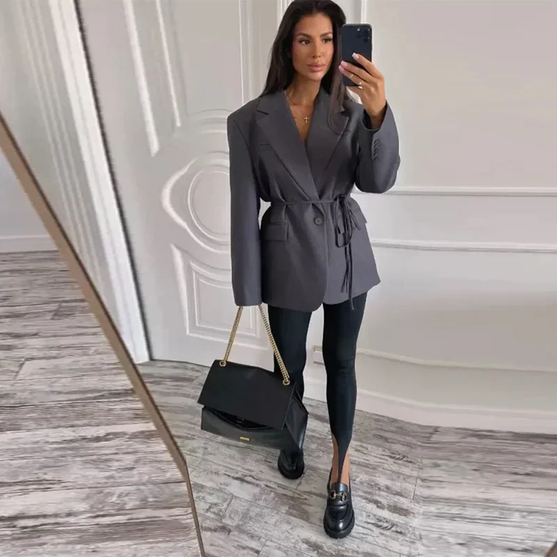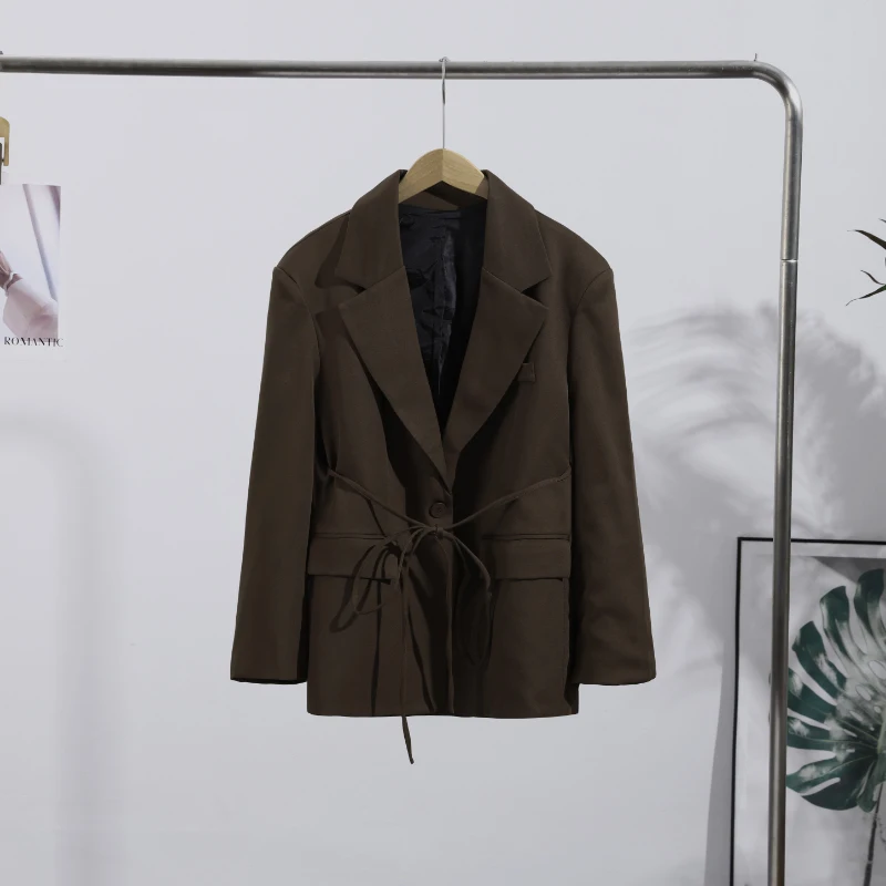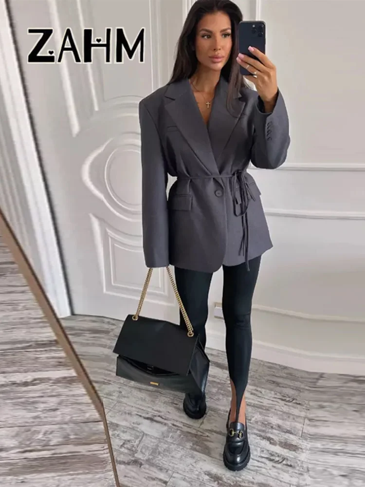 Casual Belt Loose Women Blazer Single Button Long Sleeve Lapel Solid Female Coats 2025 Autumn Lady Street Outwear New - AliExpress