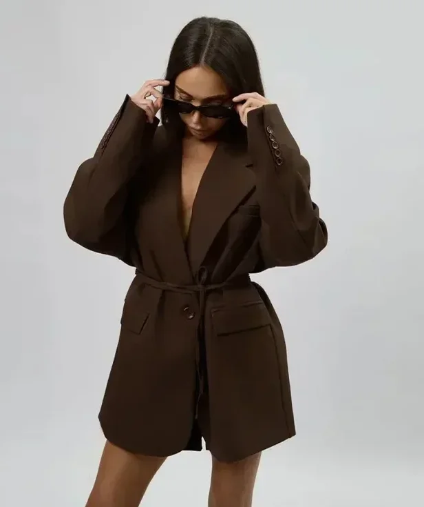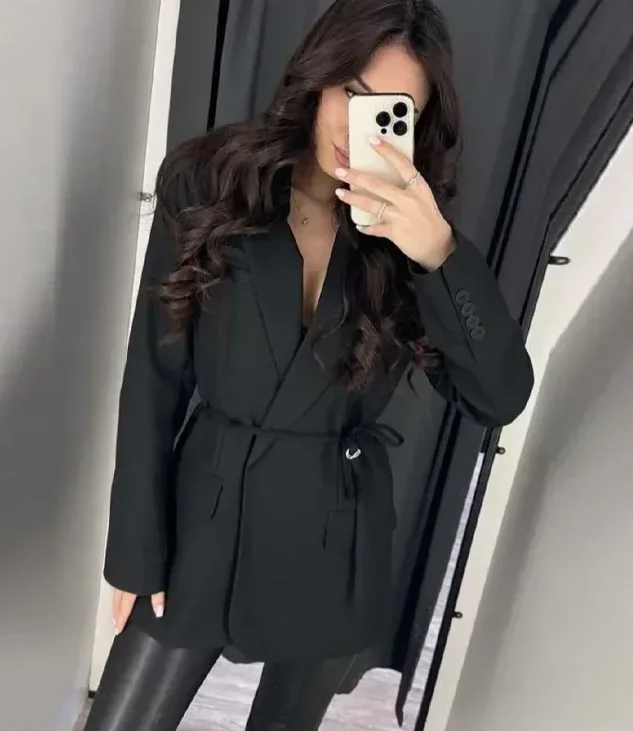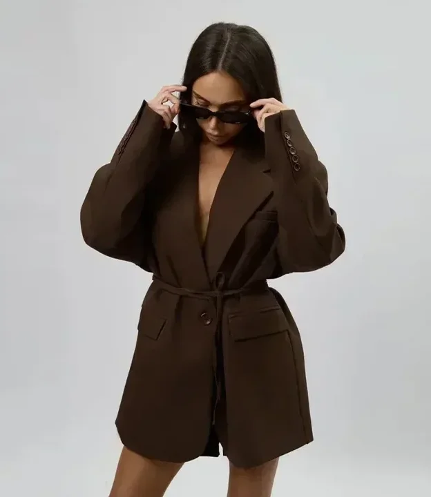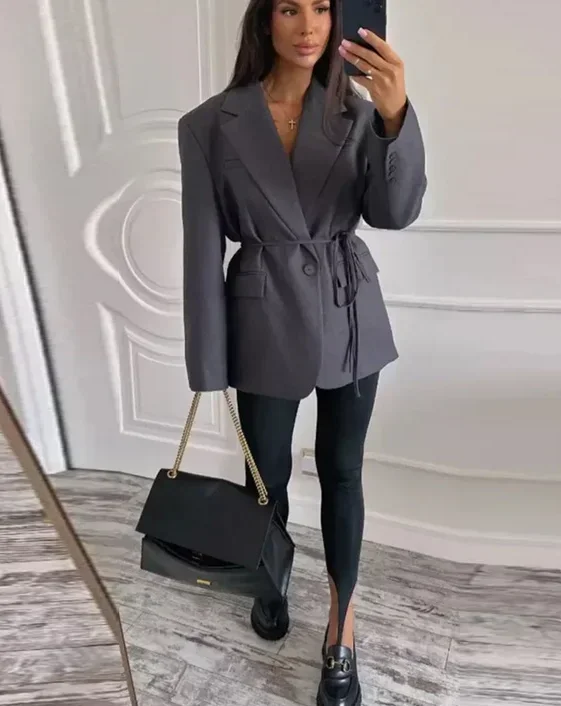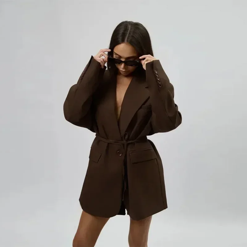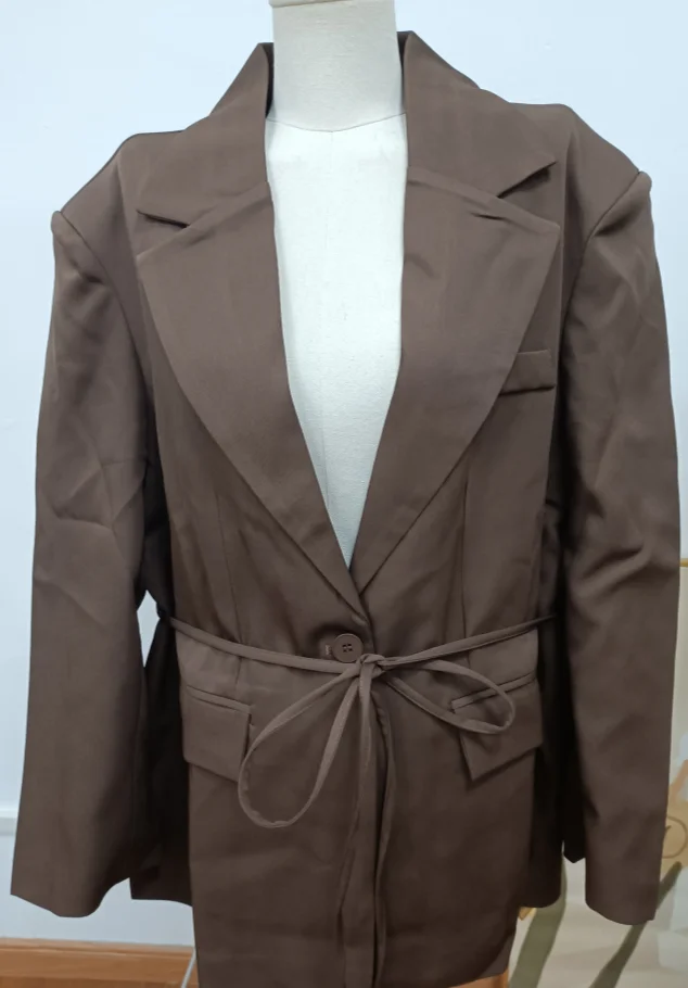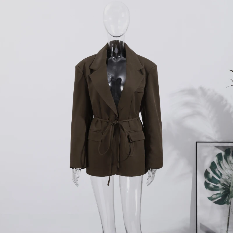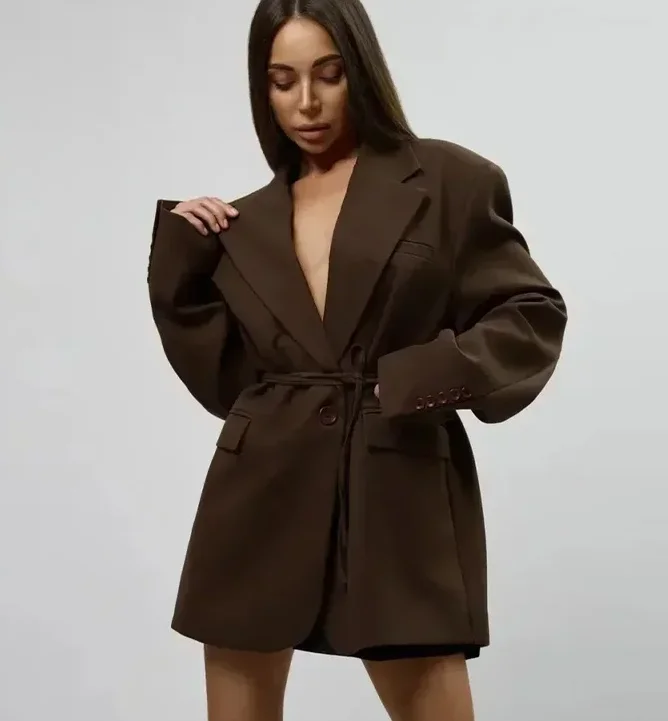 38 reviews for Casual Belt Loose Women Blazer Single Button Long Sleeve Lapel Solid Female Coats 2025 Autumn Lady Street Outwear New – AliExpress