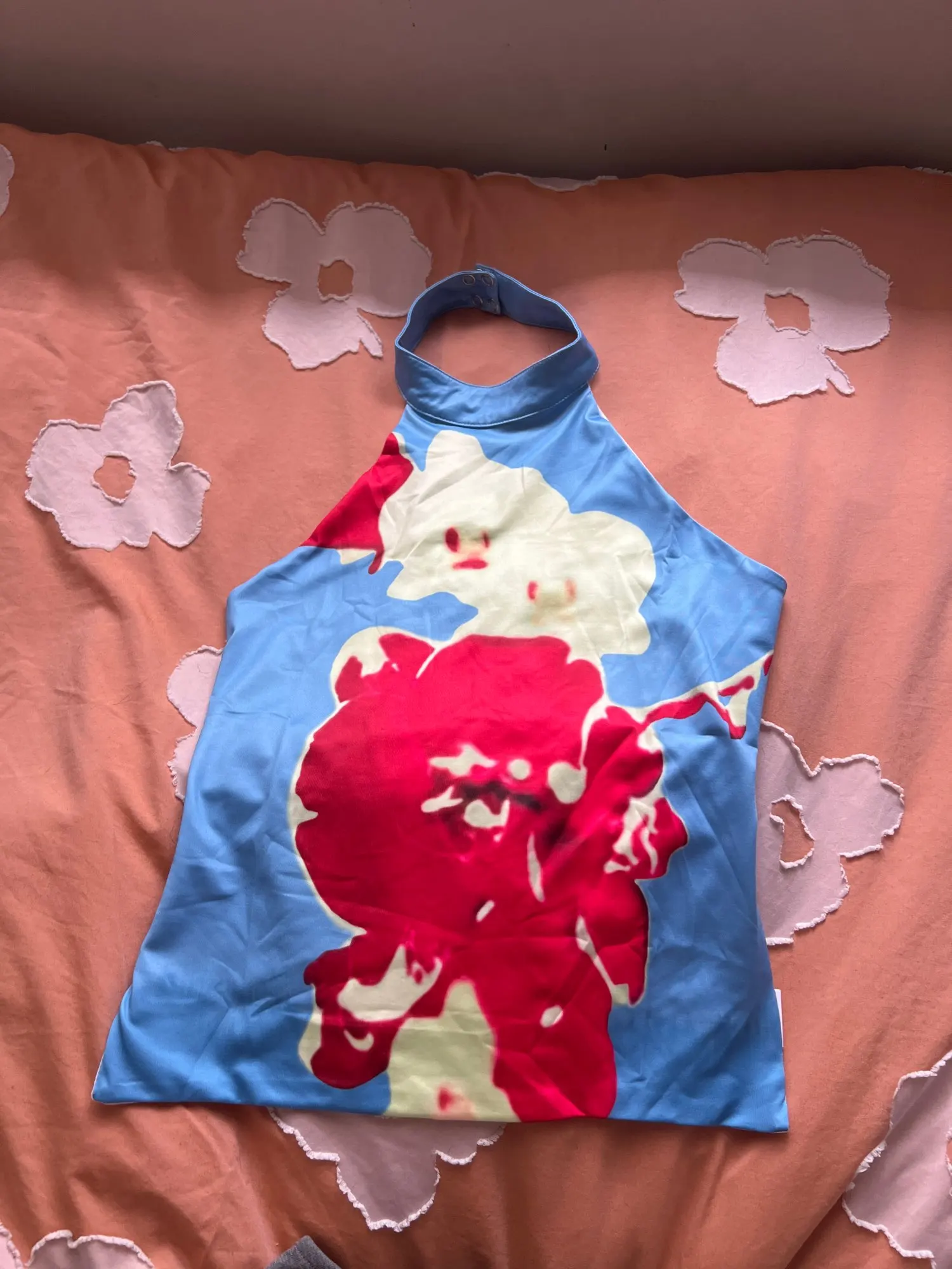 The top itself for what it costs is not bad, I don’t like the fabric at all, the flower pattern looks pixelated, it’s large.