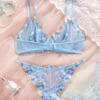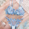 Sexy Adult Lingerie Set Light Blue Ultra Thin Mesh Underwear Delicate Embroidery Bra and Panties Sets Translucent Sexy LingerieUSD 7.13-7.19/piece