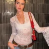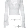 18 reviews for Dulzura V-Neck Long Slit Flare Sleeves Lace T-Shirt See Through Sexy Crop Top Party Clubwear Autumn Winter Y2K – AliExpress