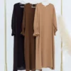 3 reviews for Eid Jersey solid modest under Abaya Dubai 2024 Palestine women’s Islamic clothing Muslim caftan inner dresses Muslim Women’s Dress