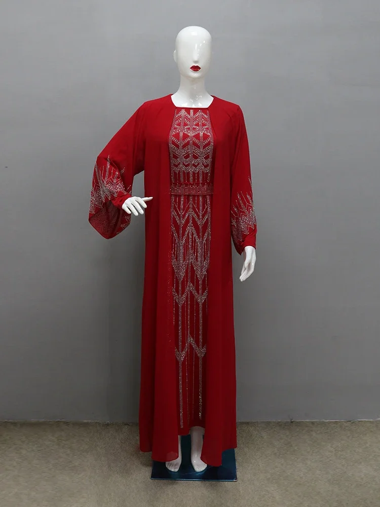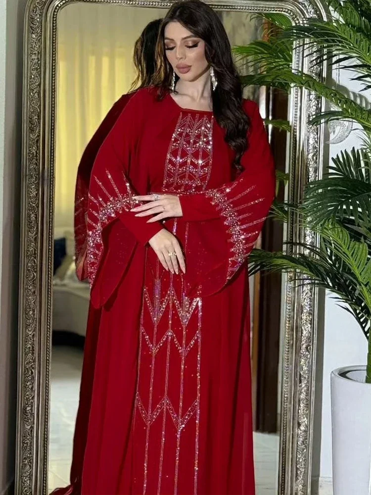 1 review for Eid Muslim Party Dress for Women Fake 2 Piece Diamond Ramadan Abaya Belt Flare Sleeve Kaftan Vestidos Largos Dubai Robe Jalabiya – AliExpress