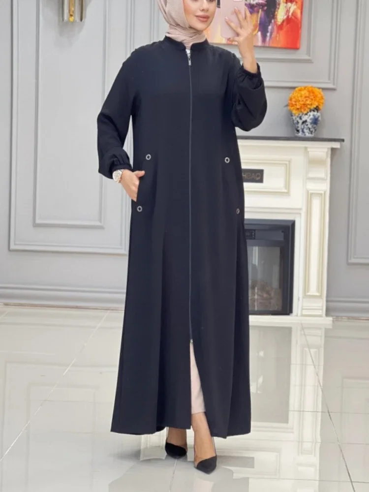 Home / Eid Muslim Party Dress for Women Stand Collar Ramadan Abaya Long Dress Zipper Up Pocket Vestidos Largos Dubai Robe Jalabiya 2024 – AliExpress