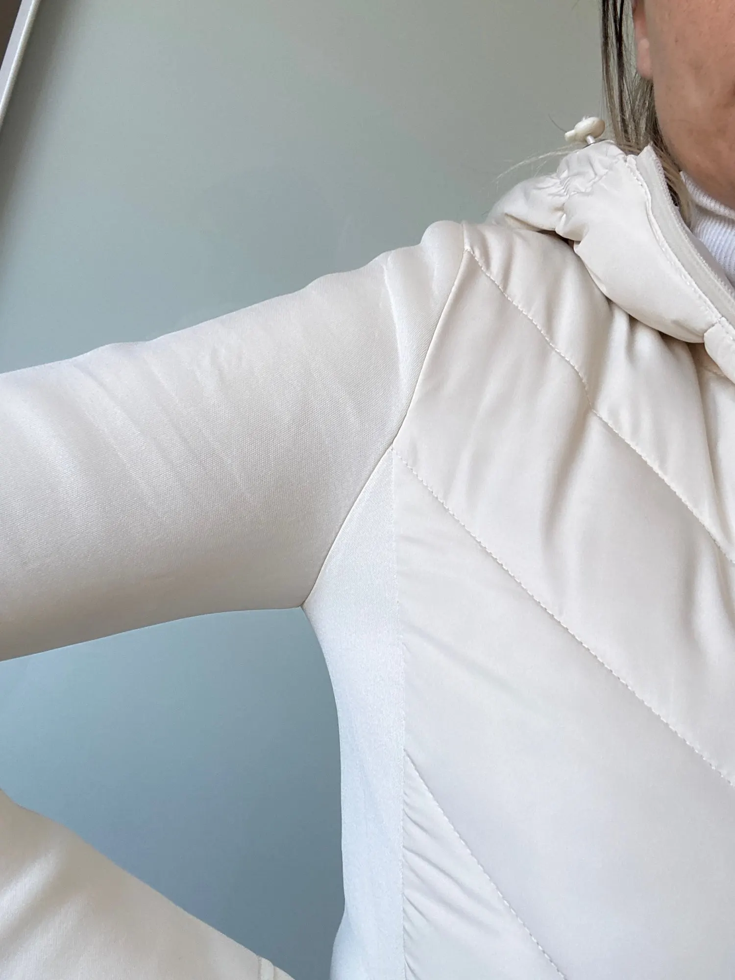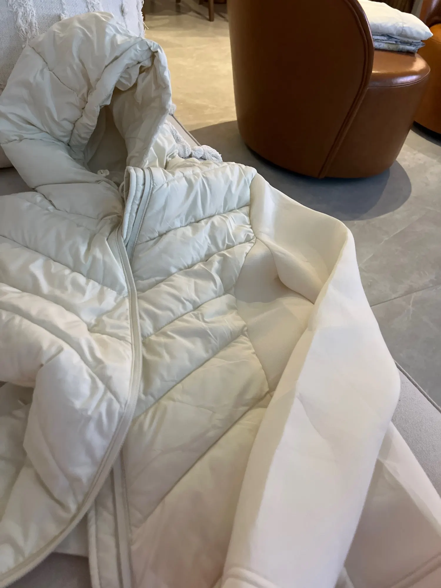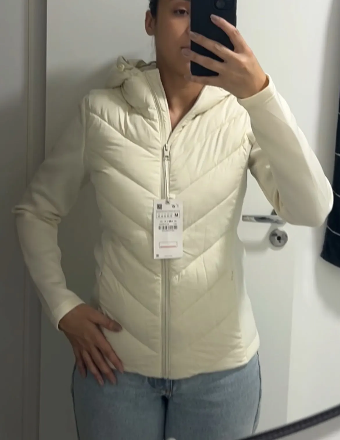 Very similar to the one from Zara. But the sleeve is not made of cotton. The quality is good for the price and it serves its purpose well, super warm and well-made!