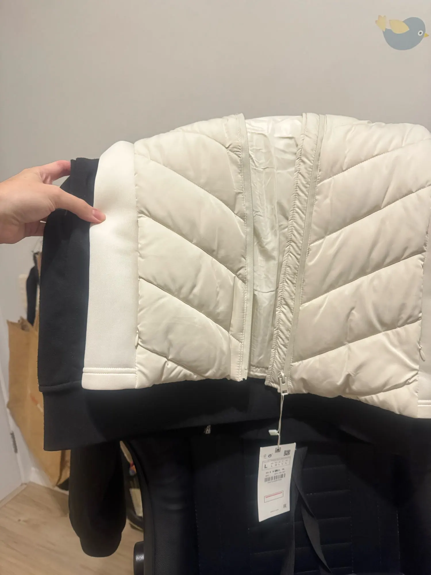 Cute jacket, thick and very beautiful! It does not come with the Zara label.