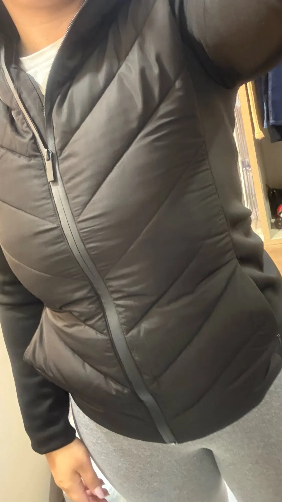 It’s very wide for being an XS, the XS is ultimately an S-M, and the seams are a bit strange. The quality isn’t that good for the price, and if you’re small, I don’t recommend it.