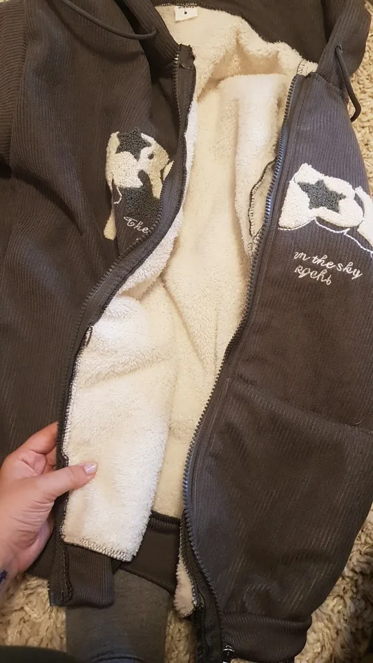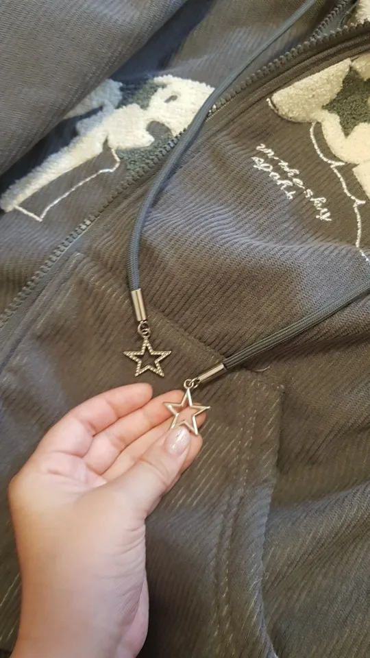The sweatshirt is really thin, but it fits perfectly under a jacket or when it’s not cold. I really recommend it, I will buy another one in a different color ^^ the only problem is that the star on the string fell off quickly.