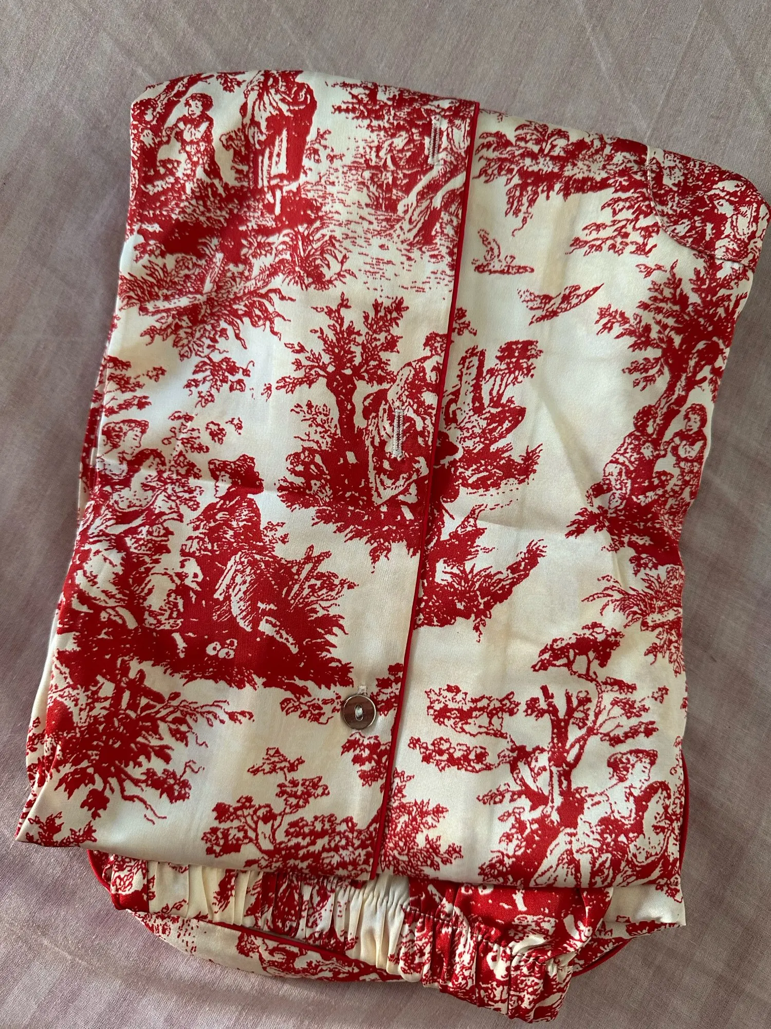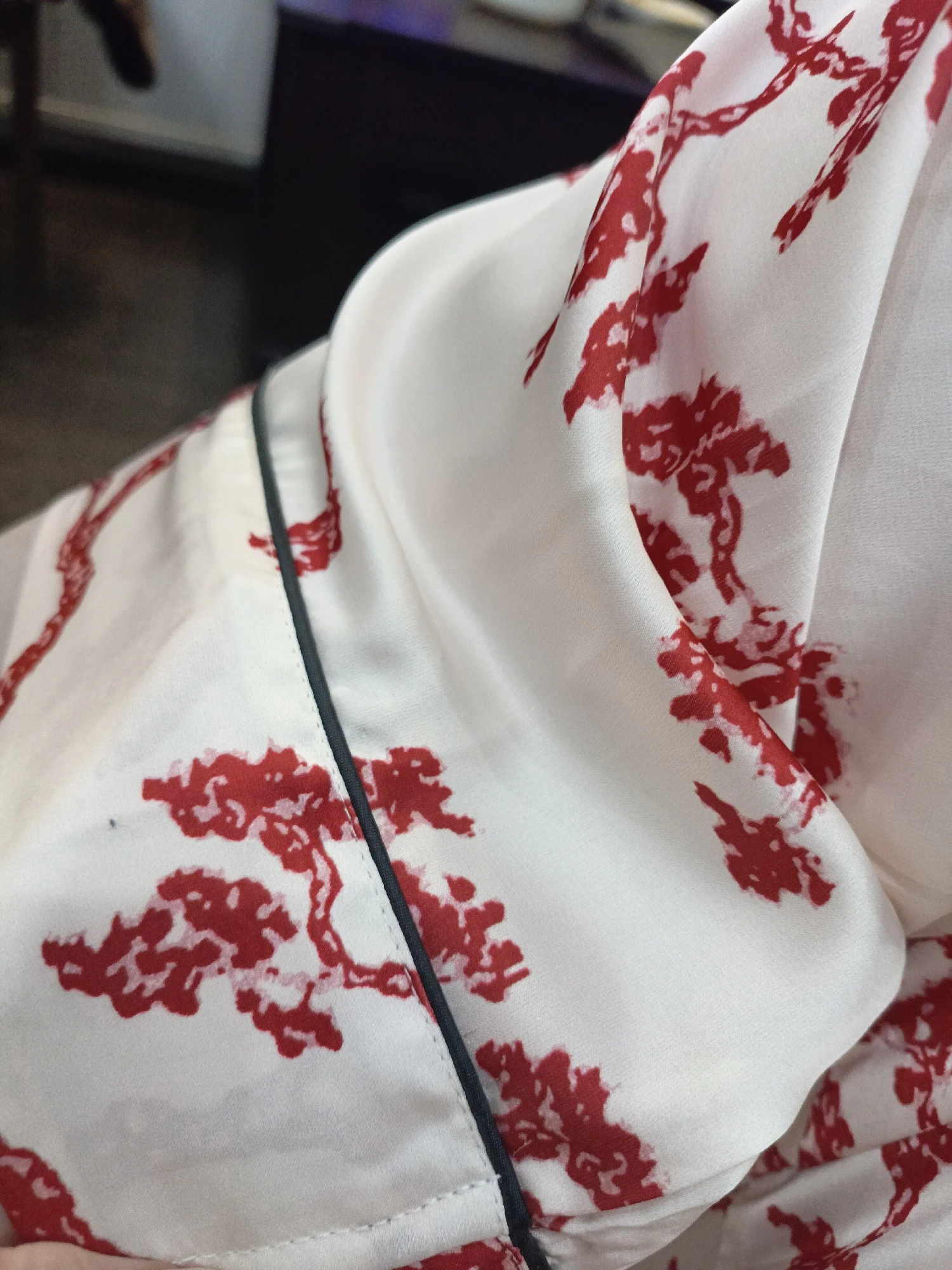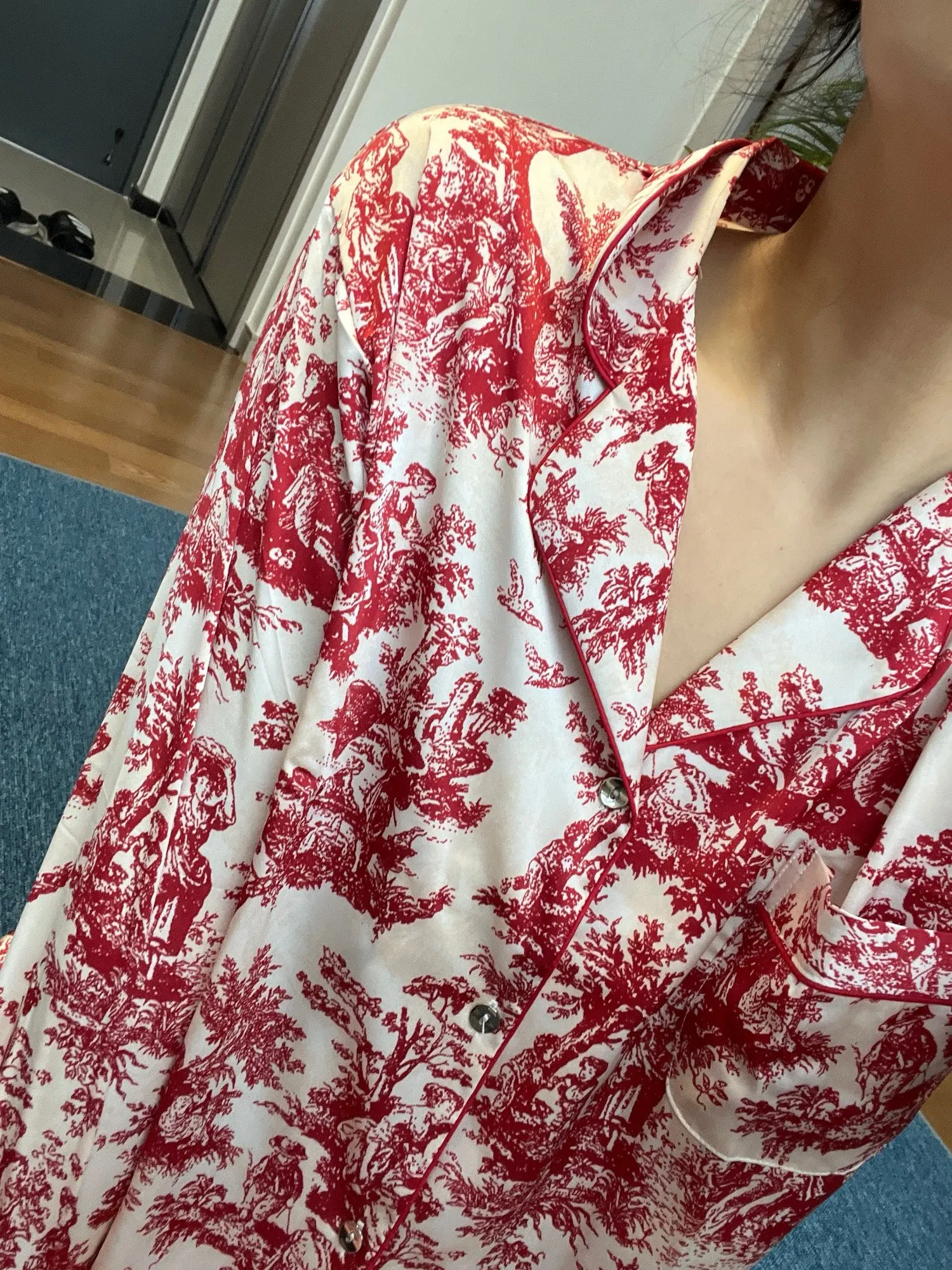 Good evening, I wanted to say: This pajama is simply perfect. It feels comfortable to touch, has exquisite stitching, beautiful prints and colors, and was delivered quickly (in three weeks). In short, this is a very exquisite pajama. If it was made by my dear Chinese people, I would really like to kiss your hand.