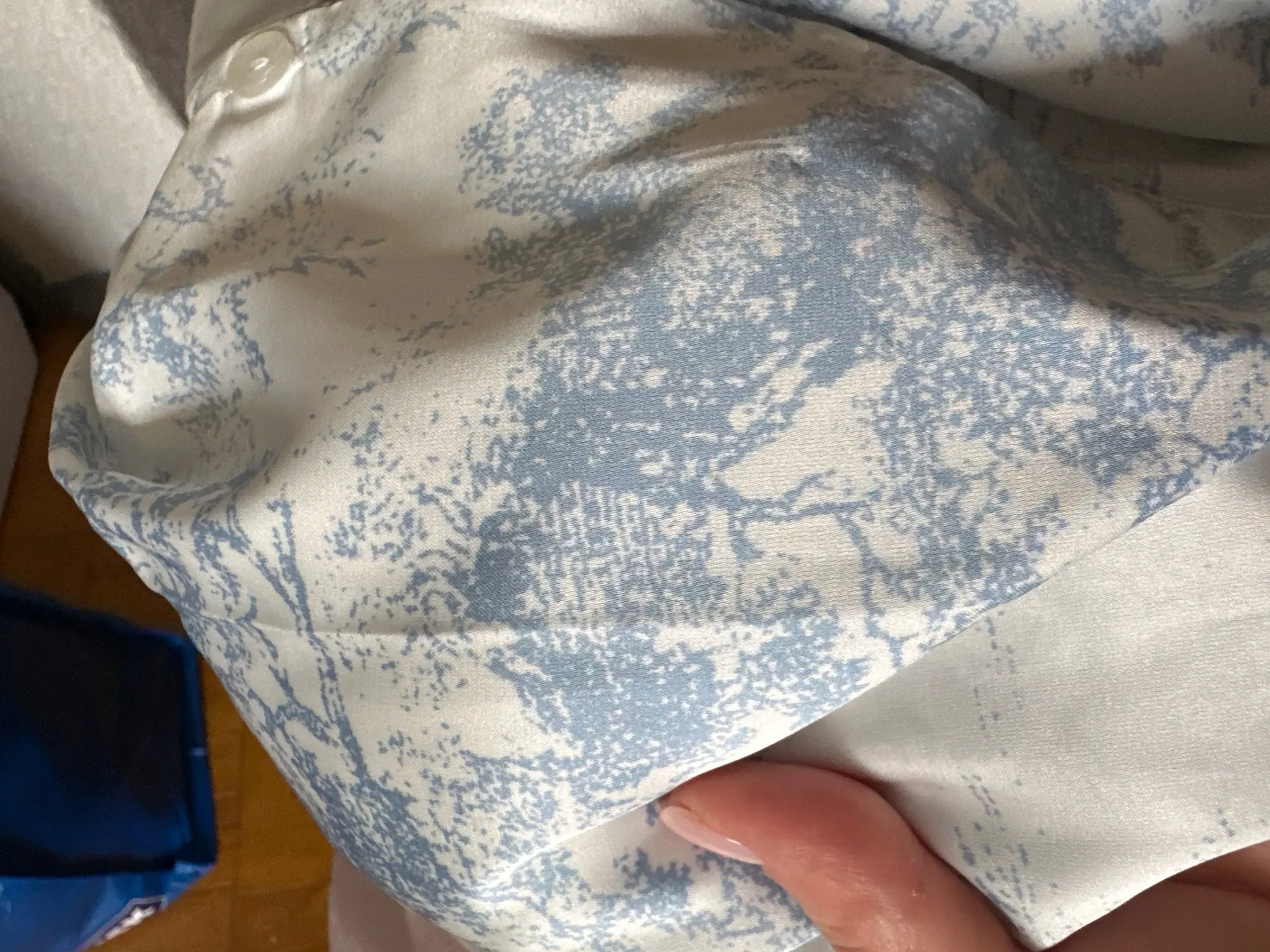 This is the second time I’ve bought it. The quality is very pleasant to the body. Before, I took the red color, it is less see-through. A little blue but still see-through. Another downside is the buttons, they don’t stay on at all, but this can easily be solved in 5 minutes. Otherwise, everything is great.
