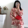 60 reviews for Fashion Print Flower 2PCS Pajamas Set Women Sleepwear Spring Summer Trouser Suits Lounge Wear Loose Satin Homewear Pijamas Suit – AliExpress
