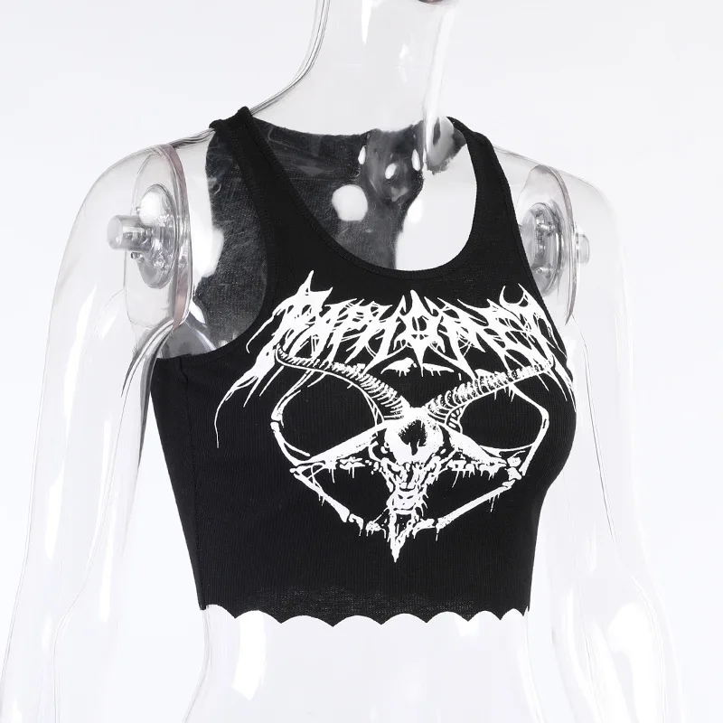 Gothic Knitted Punk Black Tank Tops Mall Goth Grunge Goat Print Harajuku Women Crop Tops Skinny Sleeveless Streetwear - AliExpress