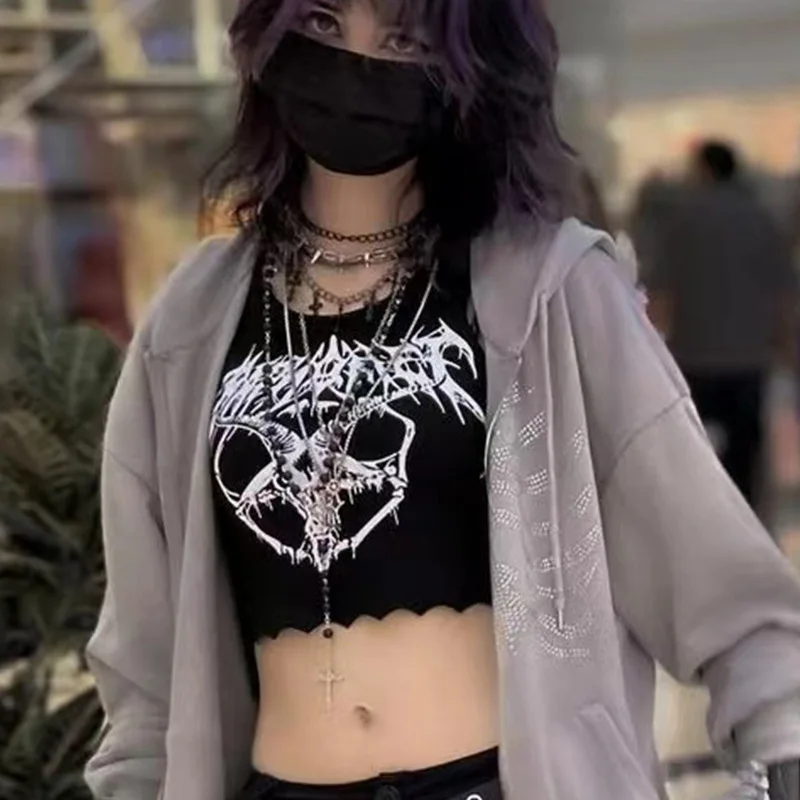 5 reviews for Gothic Knitted Punk Black Tank Tops Mall Goth Grunge Goat Print Harajuku Women Crop Tops Skinny Sleeveless Streetwear – AliExpress
