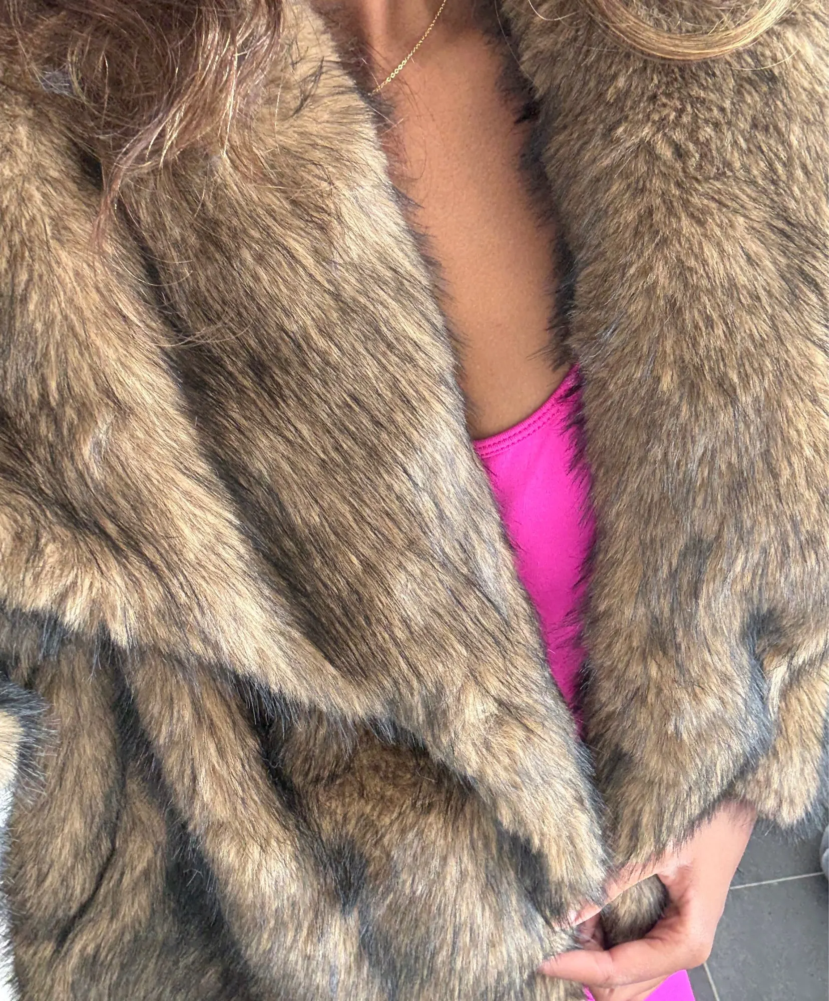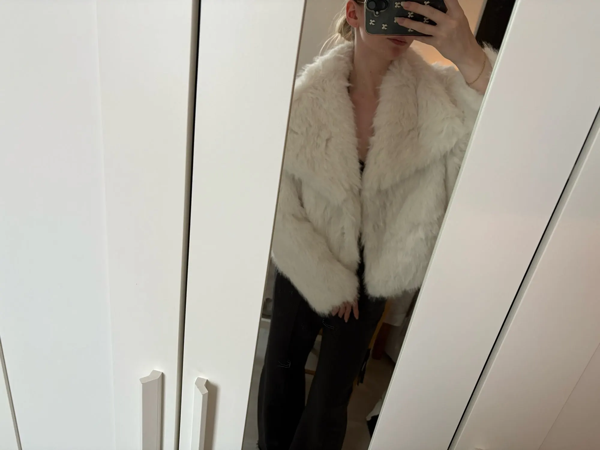 It’s definitely more of a fashion piece than a heavy winter coat — ideal for cold breezes or après-ski outfits with some layering underneath. The material does shed a little, but nothing excessive or messy.