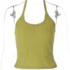 3 reviews for Hugcitar 2025 Summer Ribbed Halter Backless Solid Sexy Crop Tank Top Casual Y2K Women Clothes Beach Vacation Streetwear Yoga – AliExpress