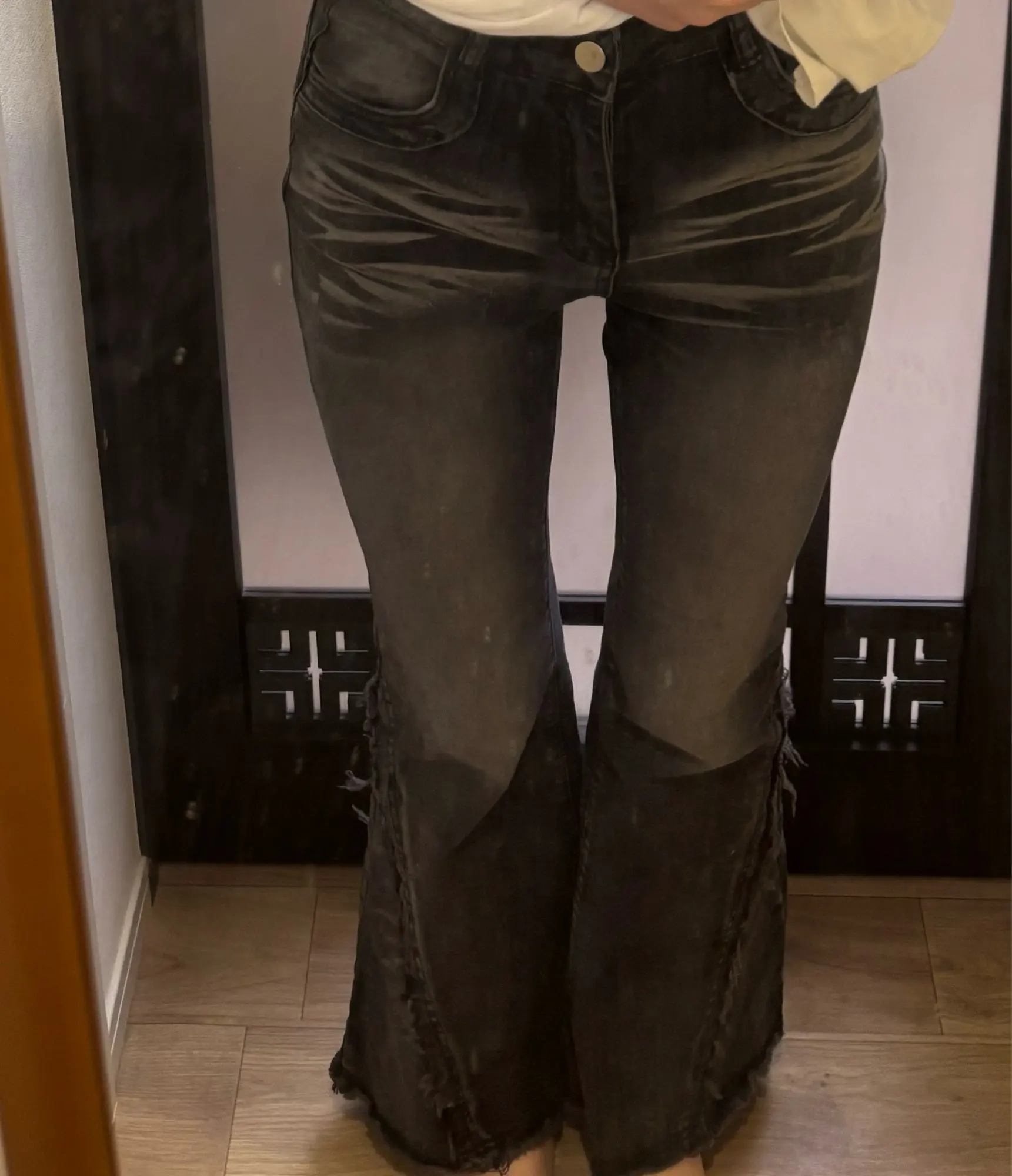 Le jean ne rend pas vraiment comme sur la photo : j’ai reçu un taille haute au niveau des hanche, ce qui fait que le bas du jean ne tombe pas sur la chaussure, il est un peu plus haut. . . Sinon la qualité est très bonne et le jean et élastique et confortable! ! Pour les plus de 1m75 je recommanderais une taille au dessus…