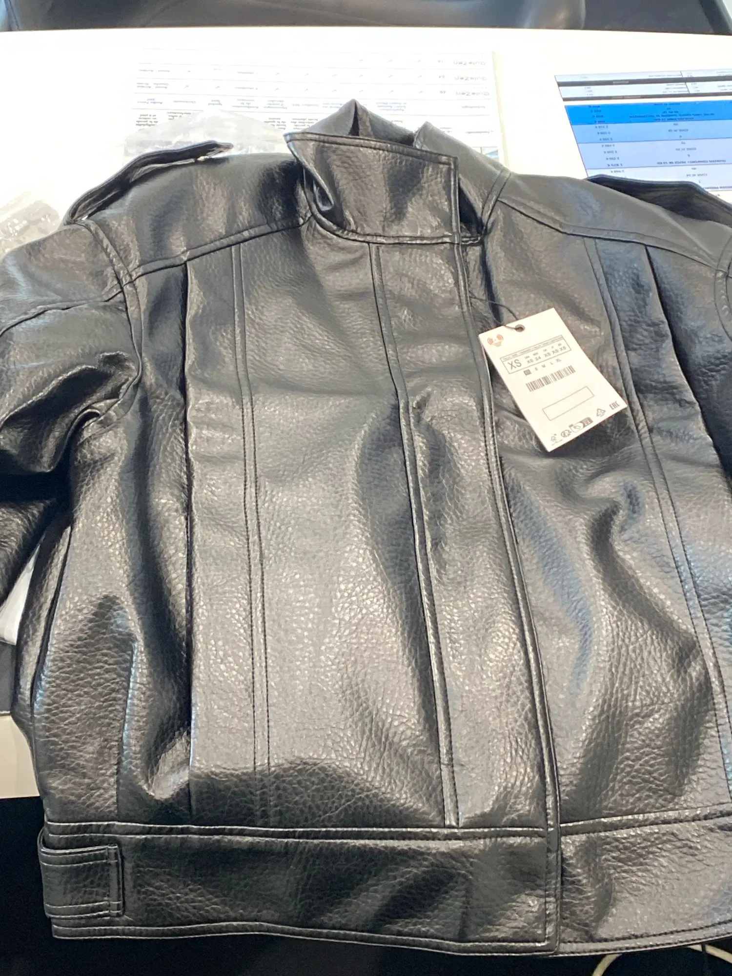 Beautiful and high quality, i think it’s made of genuine leather, very thick and warm, looks exactly like the original from zara, comes without a logo, im between s to m and i took xs and it big but i like. I did not communicate with the seller. There is only one problem that the buttons are not sewn well and it looks like some of them will fall off.