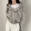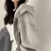 48 reviews for Korean Hood Shirt Women Fashion Fleece Lined Loose Hoodies Zipper Long Sleeve Crop Tops Harajuku Female Jackets Coats Sweatshirt – AliExpress