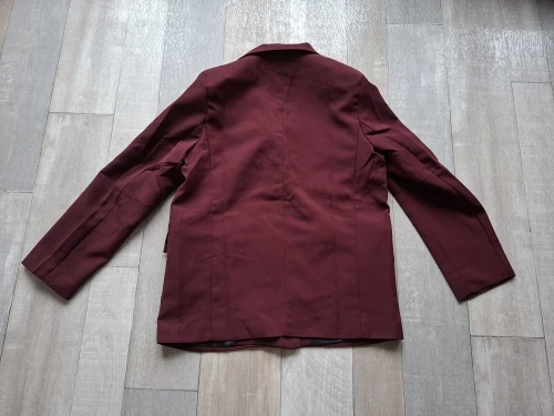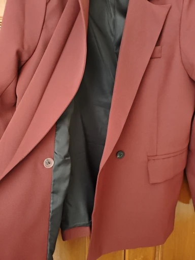 Everything is super! Fits well. The fabric is good, the accessories too. The lining is of good quality. Arrived on time, even earlier. The burgundy color is beautiful! Thanks to the seller!!!