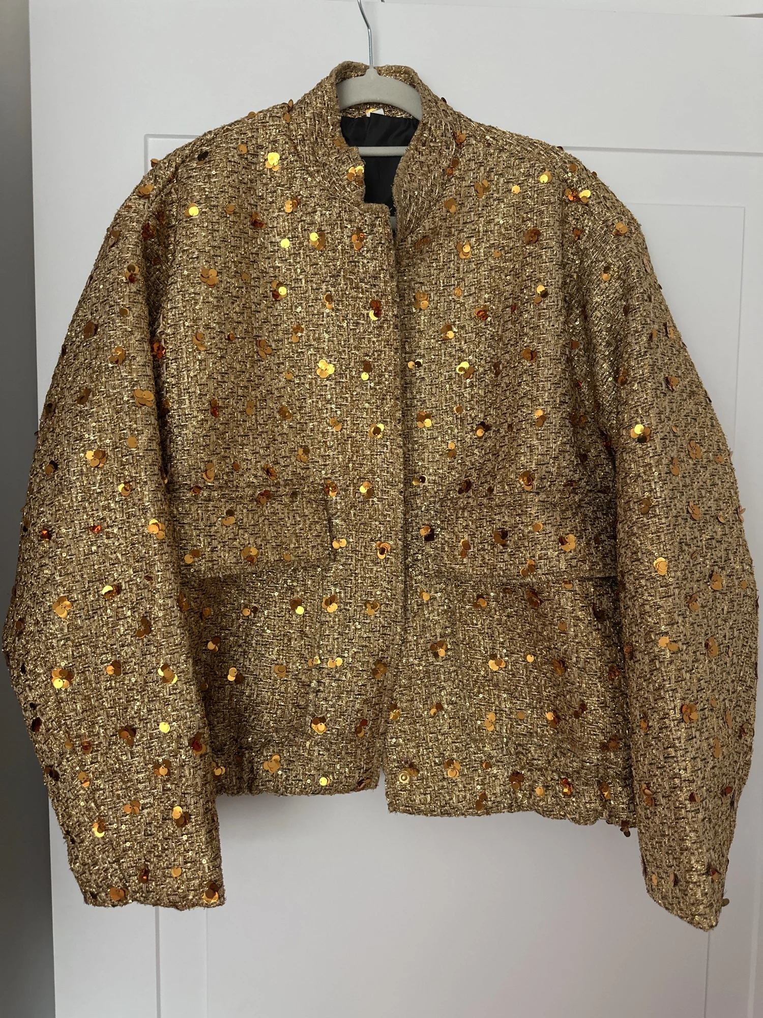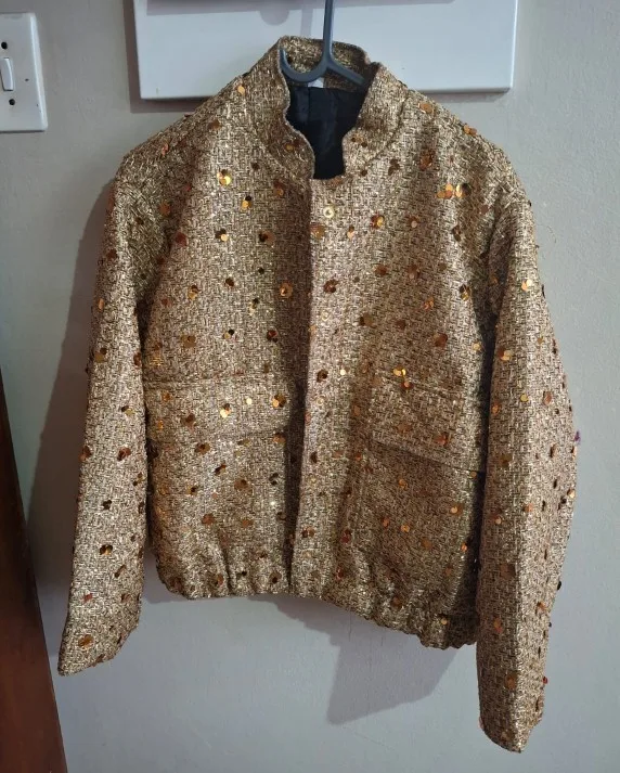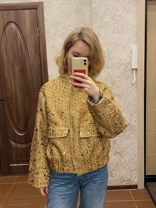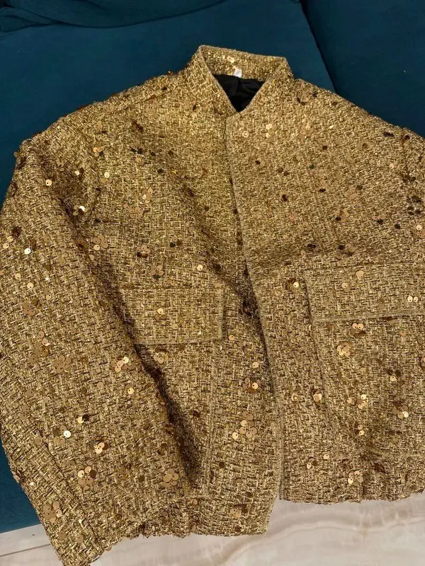 52 reviews for Nlzgmsj Women Shiny Sequin Jacket Y2k Gold Color Stand Collar Long Sleeve Short Coat Autumn Winter Ladies High Streetwear – AliExpress