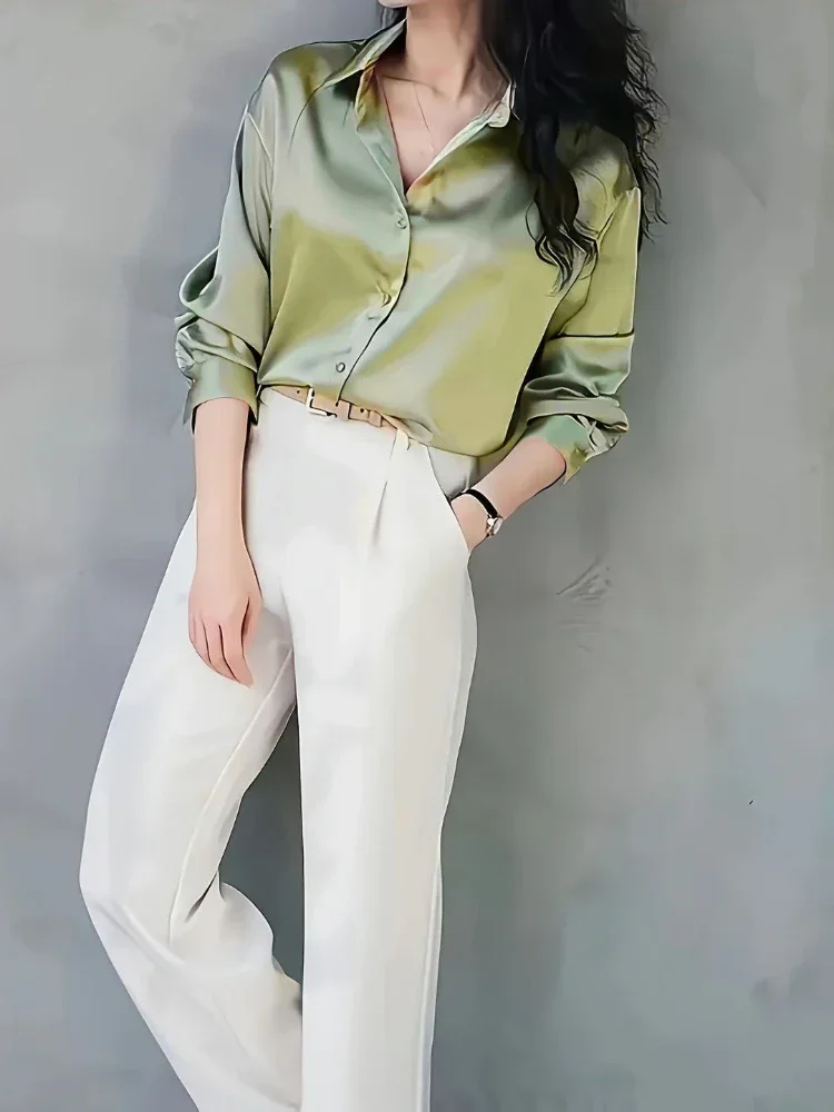 1 review for Plus Size Shirts 2025 Loose Casual Women Silk Fashion Long Sleeve Button-Down Blouse Senior Female Elegant Solid Top Office Wear – AliExpress 200000345