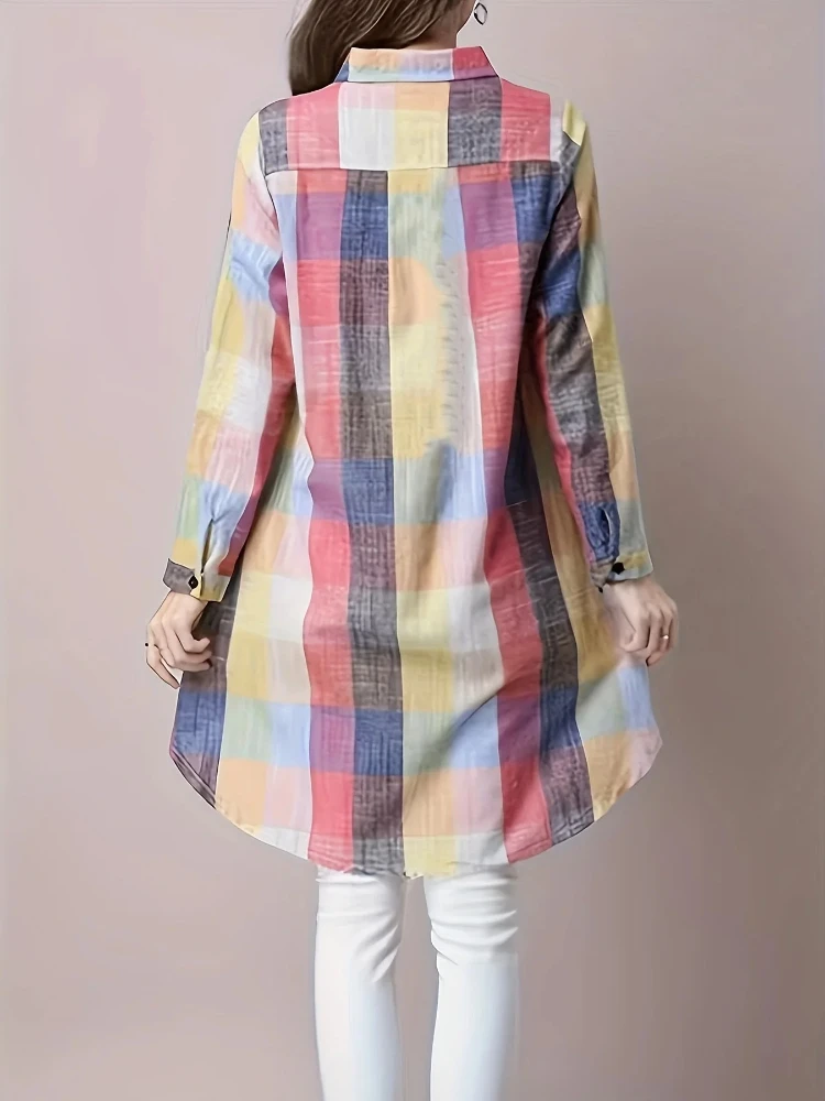 Plus Size Women's Blouses 2025 New Loose Vintage Stripe Plaid Shirt Lightweight Long Sleeve Travel Wear Elegant Top Korean Style - AliExpress 200000345