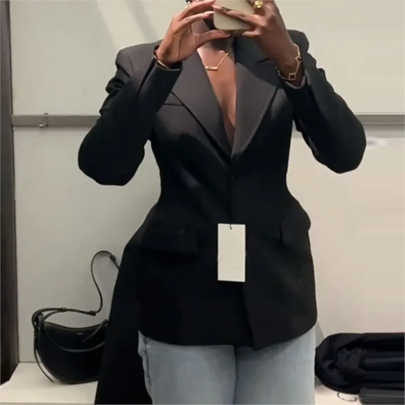 3 reviews for Retro Fashion Black Commute Professional Blazer Coats Deep V Shoulder Pads Suit Coat Jacket Women Waist Cinched Office Outwear – AliExpress