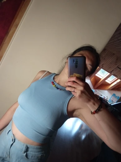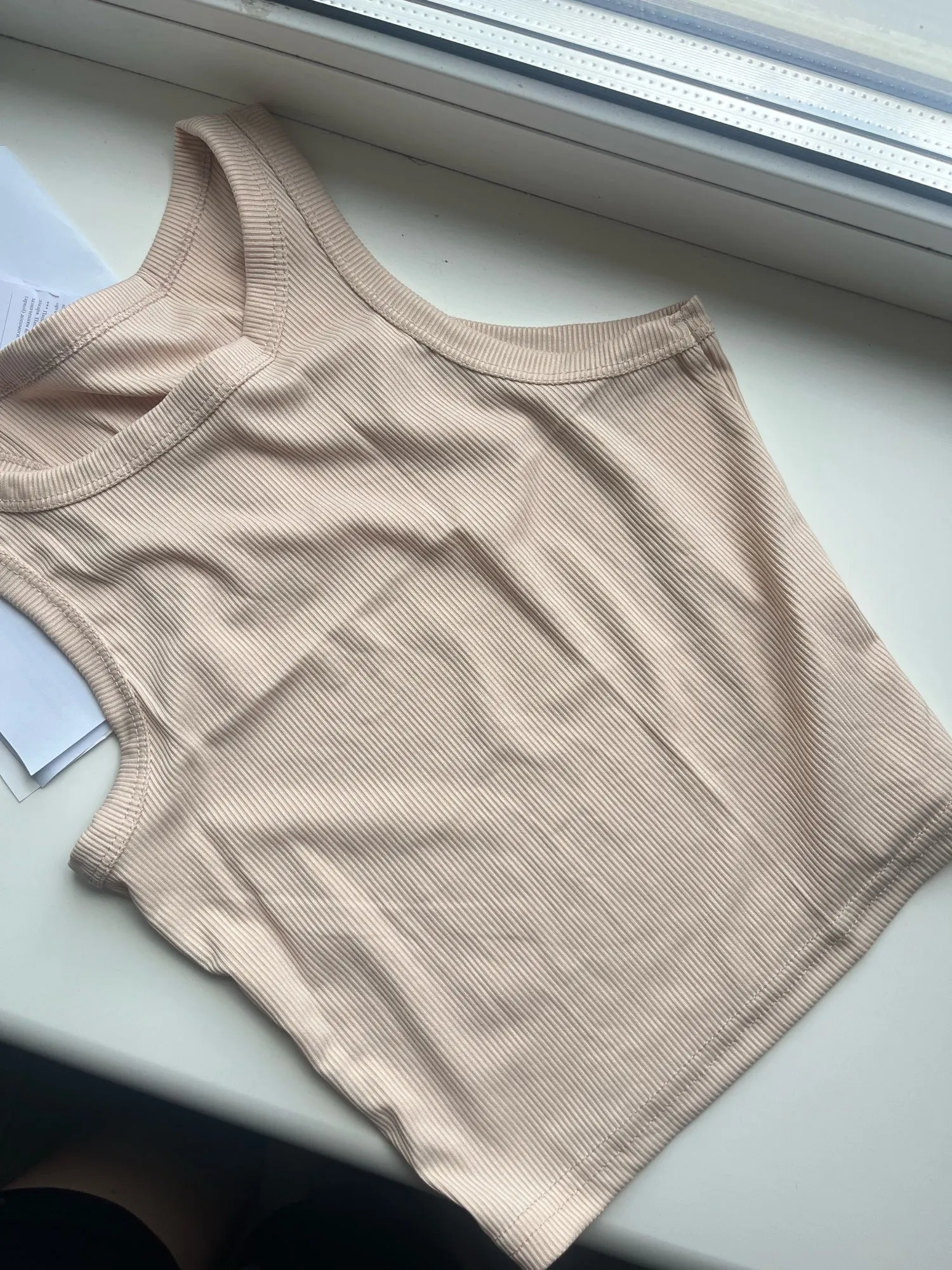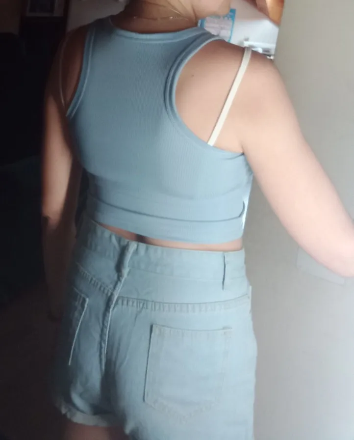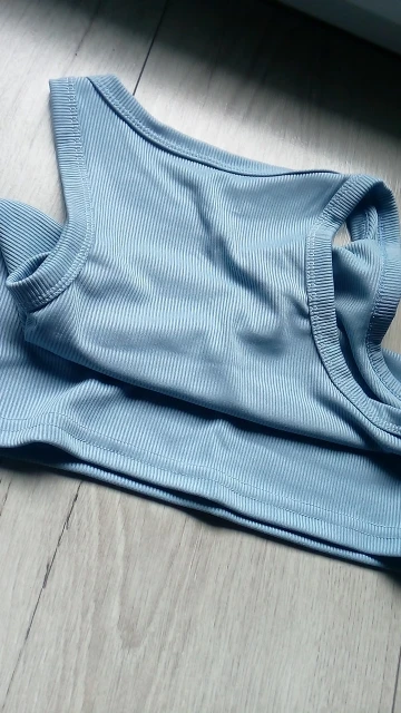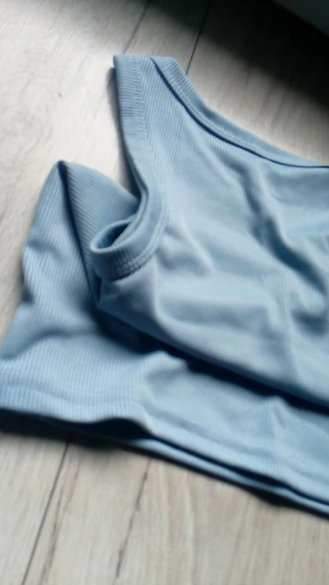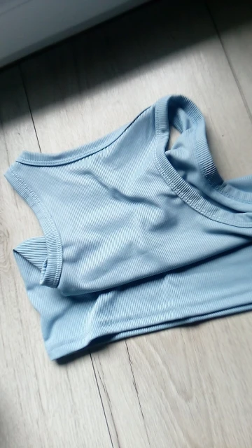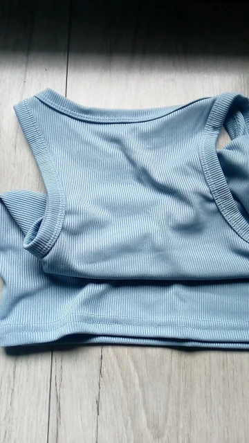 The top is super cool. My usual size M fits perfectly, so there’s no need to take a size larger. The color is very beautiful, gray-blue. Perfectly matches high-waisted jeans. The seams are well processed. It has no smell. Polyester, soft fabric, stretches well.