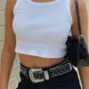 60 reviews for Rib Knit Green Women’s Tank Top Summer Casual Basic Skinny Vest Sleeveless White Off Shoulder Y2K Sexy Woman Crop Top – AliExpress