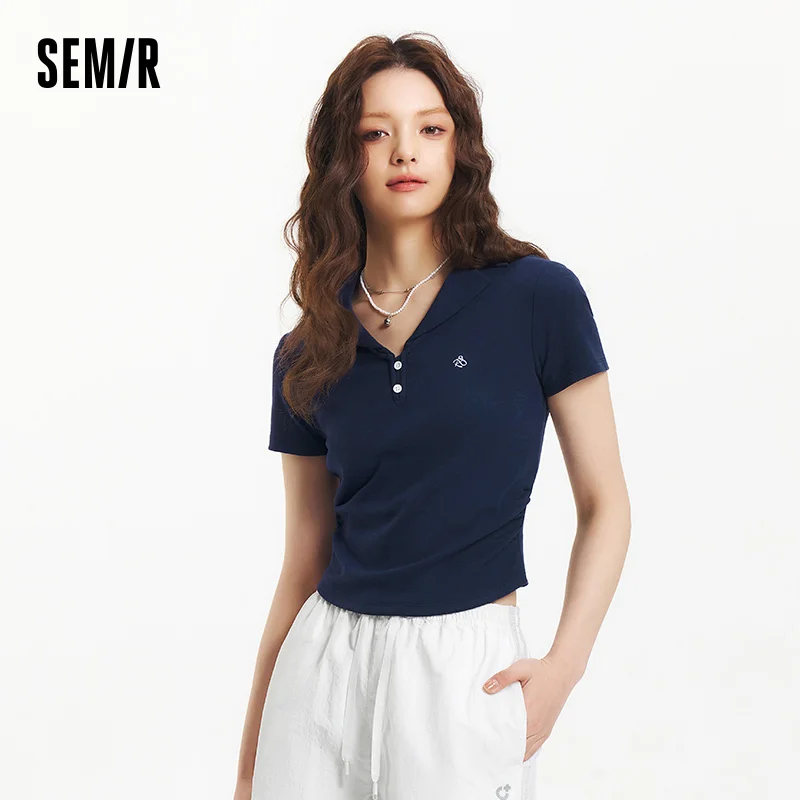 Home / Semir Polo Shirt Women Cropped Blazer Collar 2025 New Summer Embroidered Cool Feeling Slim Fit Top Slimming for Chic Outfits – AliExpress