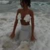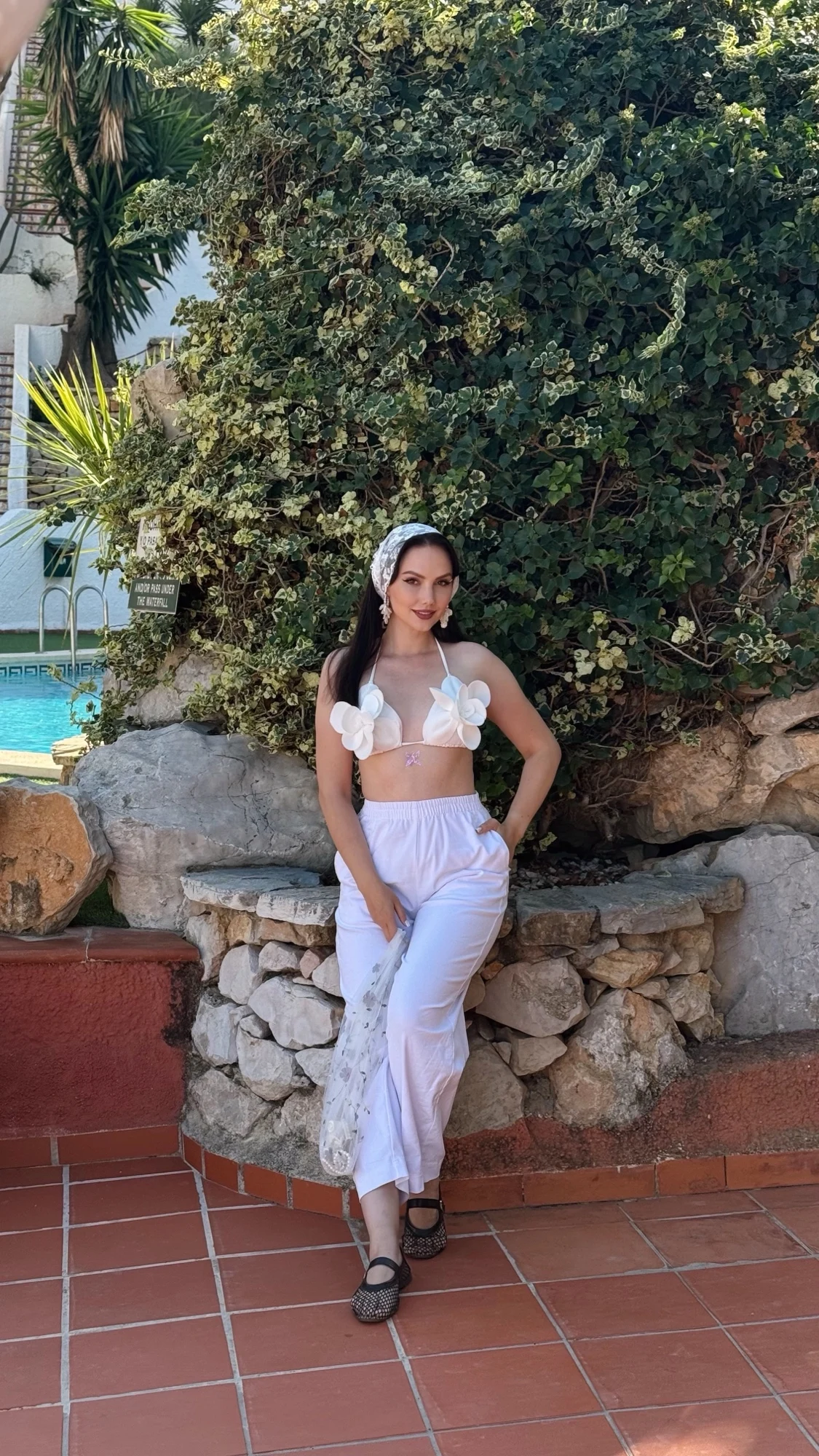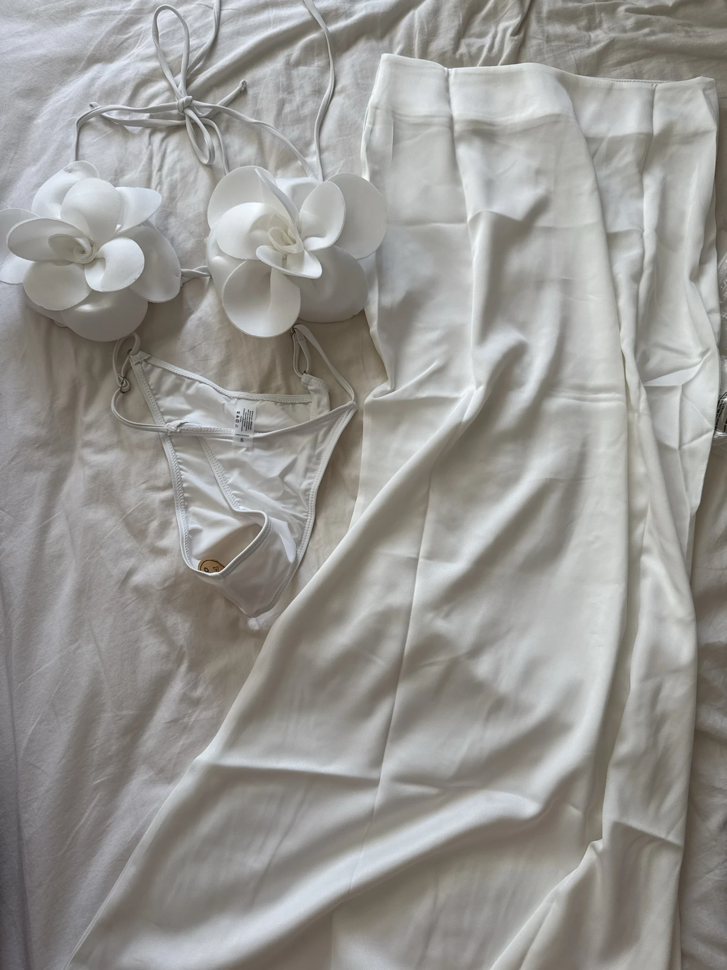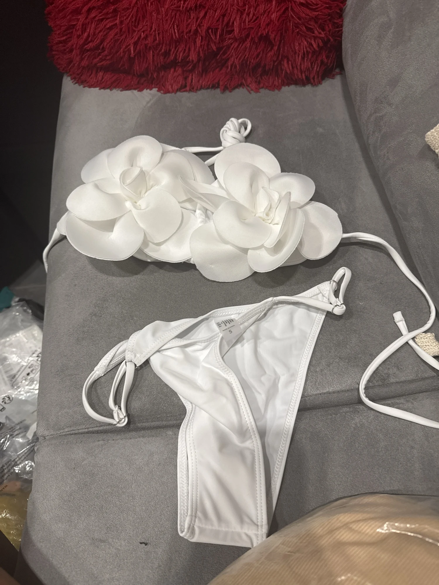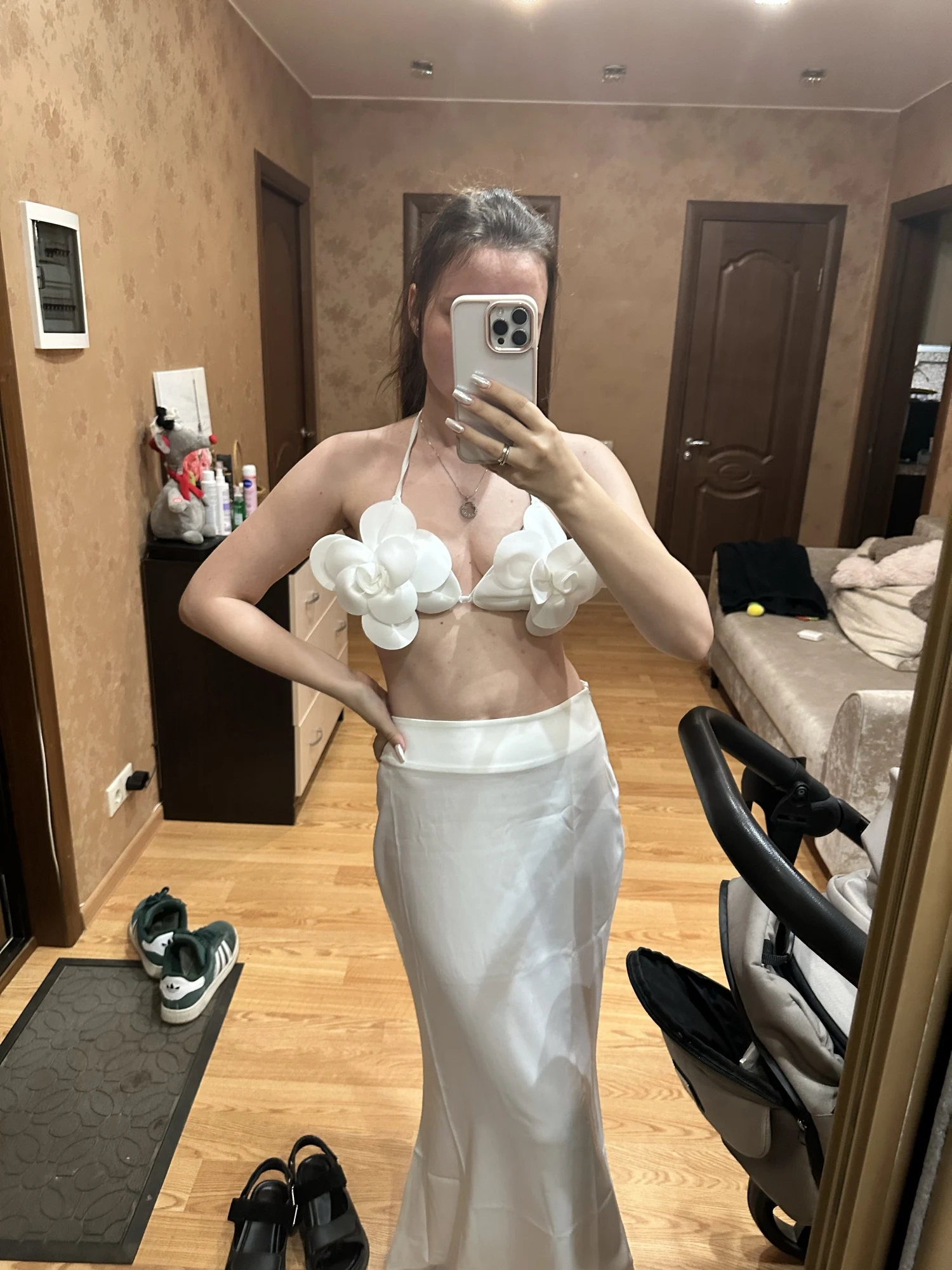 Arrived with a slight delay of +-30 days, there is time to wait. The quality is good, the skirt is included in the set, everything is neatly folded (I thought everything would be wrinkled). I ordered model s, I have size 42-44, everything fits well. The skirt doesn’t ride up on the hips like others say, it fits me perfectly without needing alterations. My butt isn’t big, the panties bunch up a bit and look bad, but it’s not for lounging or swimming. It’s probably great for a photoshoot because all these flowers will droop when wet, I think they’ll also sag. . And it will look so beautiful in the photo, I think that some trimming will be needed because it doesn’t lie properly and sticks out. The skirt is see-through. The panties are adjustable and have a low-rise front. Overall, I liked everything. Thanks to the seller.
