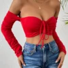 Buy Sexy Ruched Crop T-Shirt – Off Shoulder, Long Sleeve, Drawstring Front, Flattering Fit, Clubwear, Night Out, Womens Fashion Clot at Aliexpress for . Find more , and products. Enjoy ✓Free Shipping Worldwide! ✓Limited Time Sale ✓Easy Return.