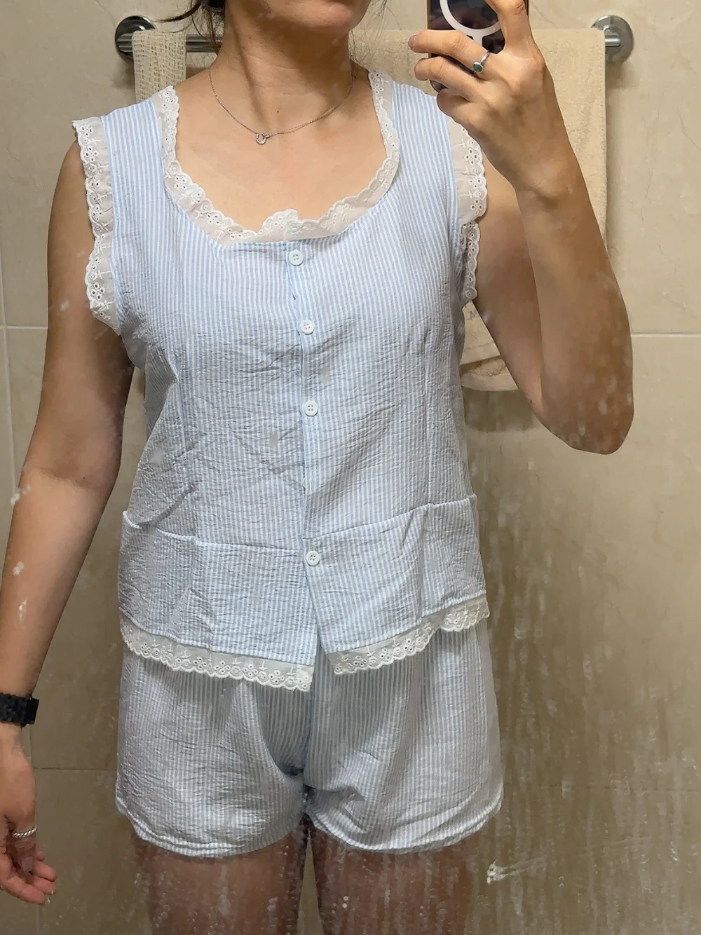 60 reviews for Striped Women Pajamas Summer Sleepwear Sleeveless Shorts Sets 2 Pieces Lace Night Wears Tank Korean Sleeping Home Suit 2025 New – AliExpress