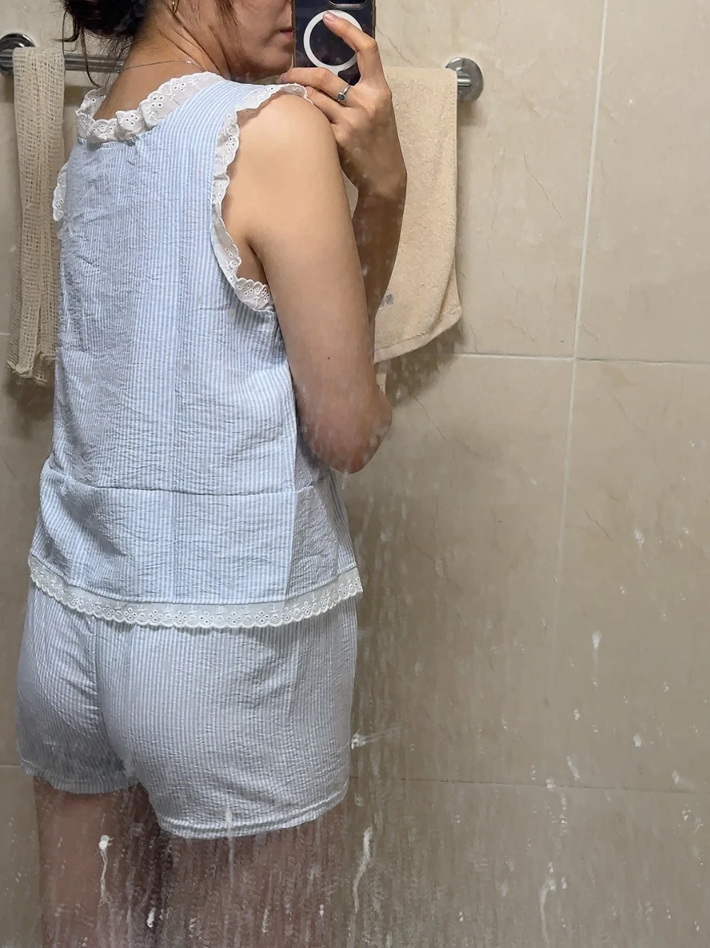 I deliberately ordered a large size, and it’s good that it’s spacious! The top is a bit baggy, but since it’s pajamas, it’s not a big deal.