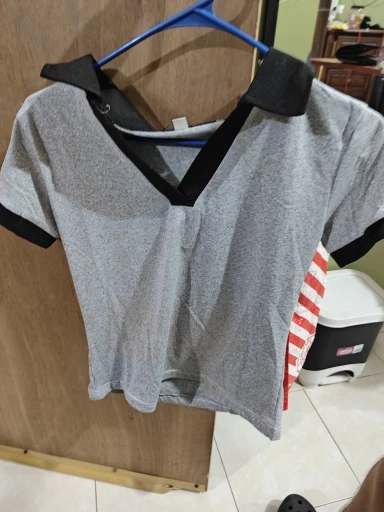 It’s not a polo shirt, it’s a thin cotton fabric, but with the collar it looks very cute.