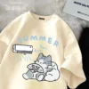 Home/Summer Japanese Cartoon Cute Cat Fun Print Short Sleeve T-shirt Women’s Loose Casual Half Sleeve Soft Bottom Plus Size Shirt Top – AliExpress 200000345