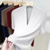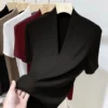 Home/Threaded New Short Sleeved Top for Women Summer Fashion Versatile Base Shirt Plus Size Slim Fit V-neck T-shirt Casual and Sexy – AliExpress 200000345