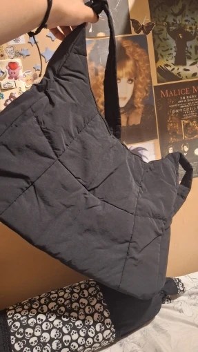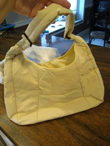The bag is wonderful, it has a rigid frame bottom, the handle is adjustable, there is an outside pocket that is magnetic. There are also small side pockets inside. It closes with a zipper, silver-colored hardware. The color of the bag is great) the fabric material is like a winter jacket)) it arrived at the new post office in 17 days.