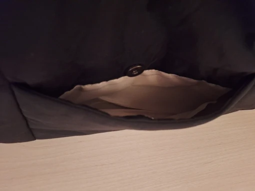 I really liked the bag, it’s big just like I like it. The seams are good, of high quality, the material on the outside is waterproof and pleasant to touch. The bag itself is suitable for all seasons of the year. Convenient to wear over the head, but the handle itself is not adjustable. Side pocket with a magnet, which pleasantly surprised me.